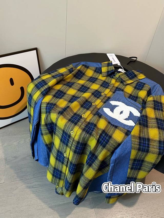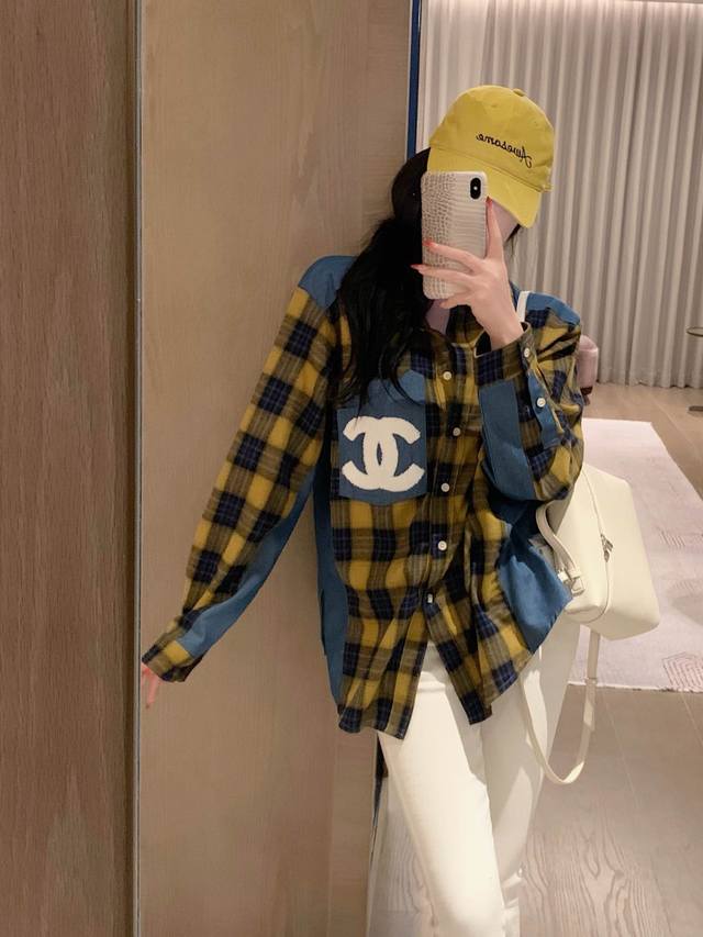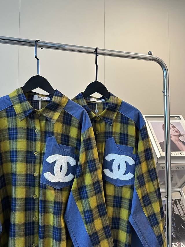 Chanel's new towel-embroidered denim patchwork plaid shirt jacket