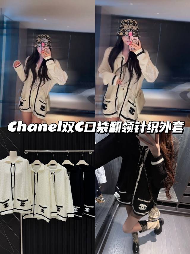 Chanel style knitted cardigan jacket, this one is completely in line with my aesthetic taste, the double C pocket design is exquisite and stylish, it is a versatile style that is not picky about people, it is made in black and white, soft and comfortable and thick, it is super luxurious to wear, and it will make you look like a head-turner~