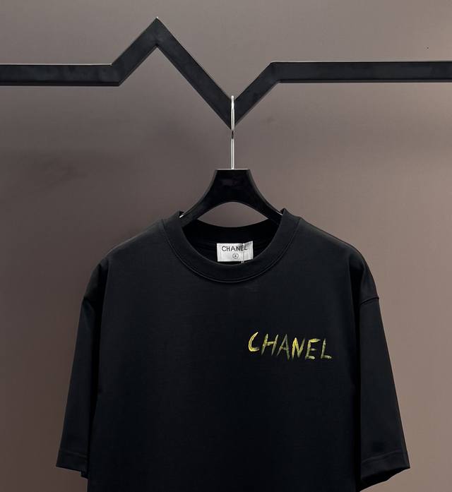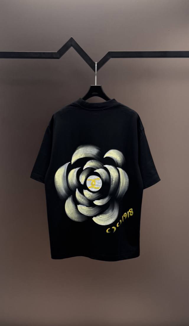 Brand: Chanel 25Ss latest top-level hand-painted Chanel brand elements, iconic logo, double C petals, hand-painted craft short-sleeved T-shirt, highlighting the brand's charm.
