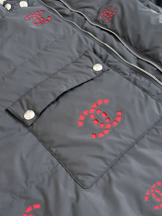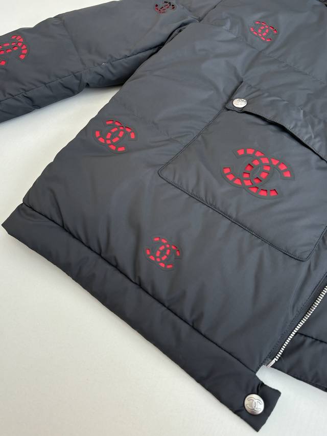 Women's Ddd Chanel* Double C Hollow-out Seam-sealed Short Down Jacket DDD Features a quilted multi-layer fabric, stand collar, side zipper, flap pockets, perfect fit, versatile and stylish, 90% white goose down filling for warmth, avoids bulkiness. Original design, hardware accessories, all details are meticulously crafted. Unisex style! DDD Size: SML DDD