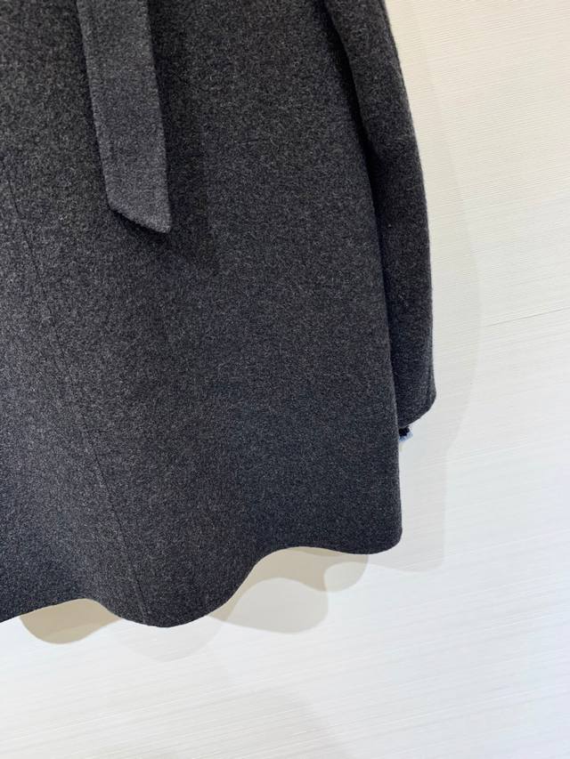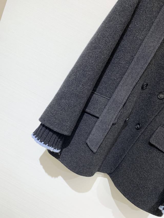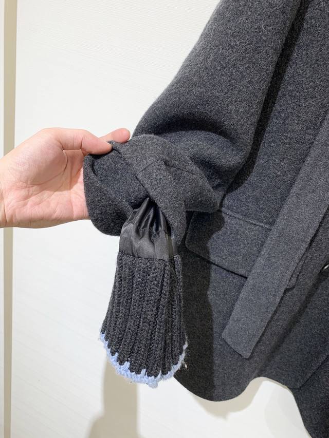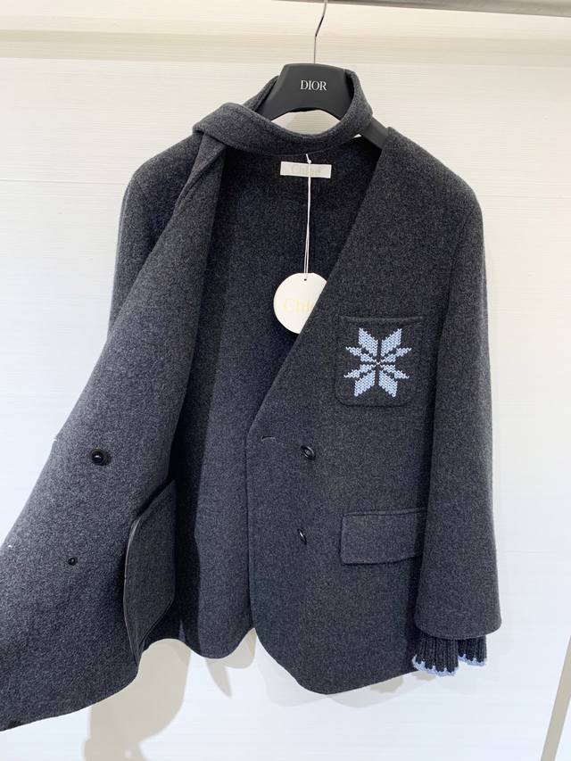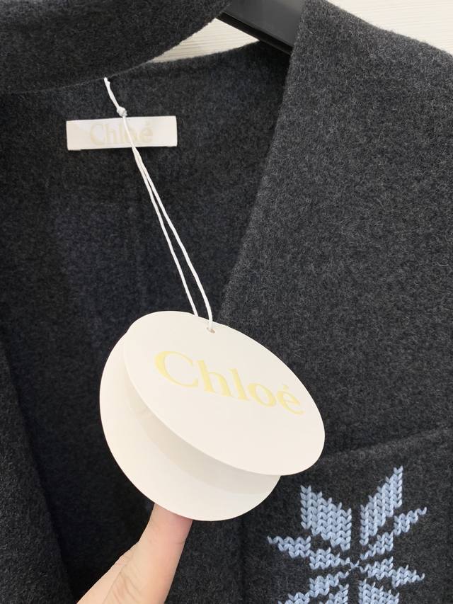 Chloe 2025 Autumn/Winter New V-neck Double-breasted Cashmere Coat, Yb Custom Made, 10% Cashmere, 90% Wool. Unique patchwork design on the sleeves. Contrasting color embroidered logo on the pockets. Comes with tie and belt for multiple styling options, showcasing a sophisticated and elegant design. Sizes: S, M, D, D
