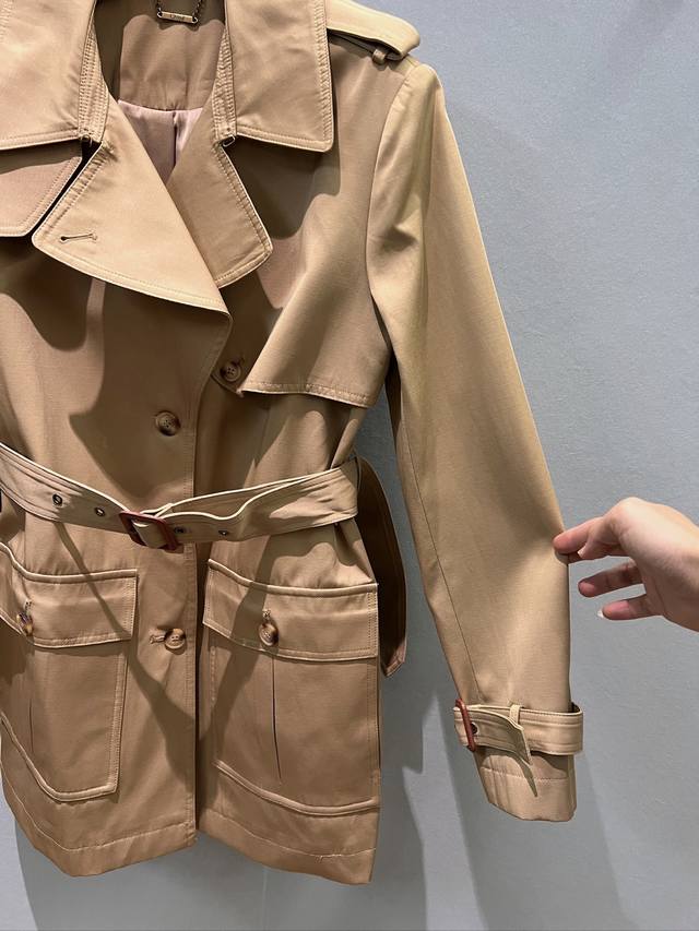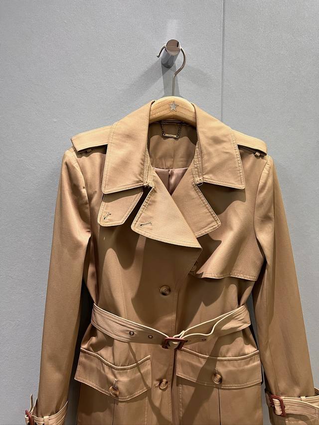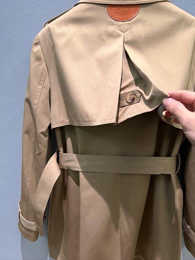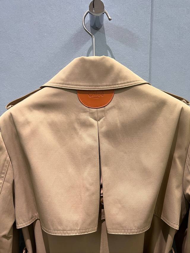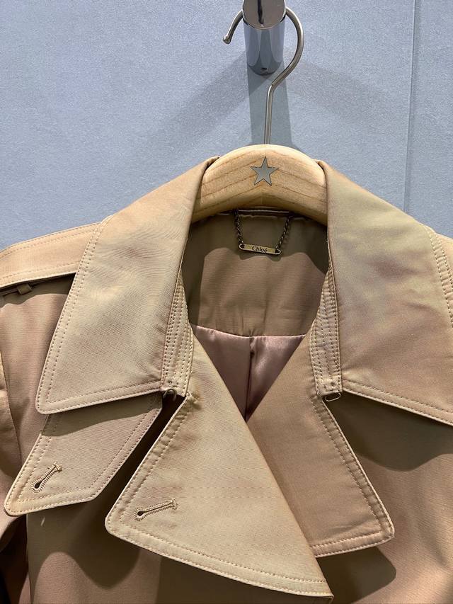 New arrival Double-breasted epaulette trench coat Mid-length epaulette cuffs decorated workwear Large pockets Belt waist slimming Chloe leather label on the back Temperament Slimming Fashionable and Elegant Sml