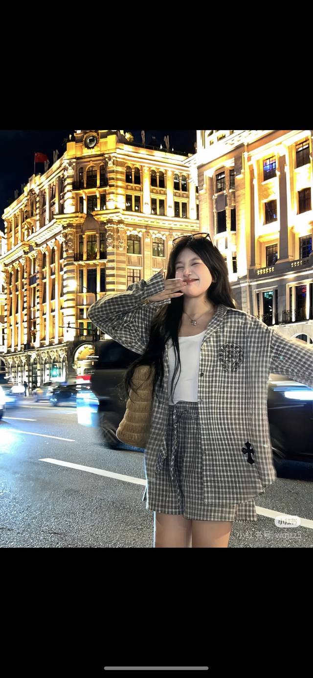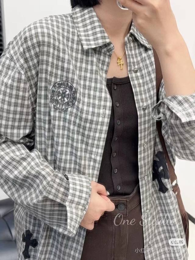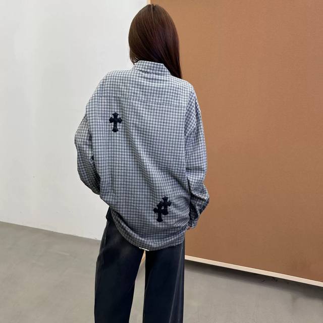 Celebrity Style New Chrome Hearts Cross Checkerboard Long-Sleeve Shirt, One Color, Three Sizes: S, M, L,