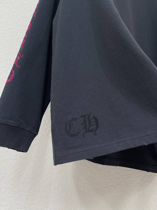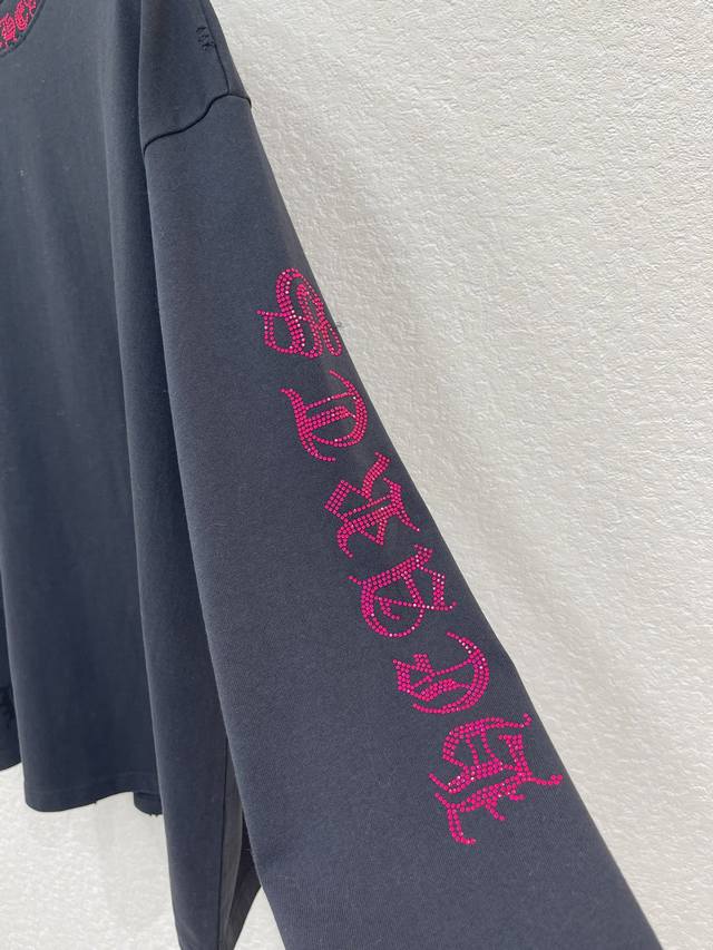 Chrome Hearts Arm Print Long-Sleeve T-Shirt Ddd 25Ss New Winter Arrival! This Chrome Hearts crew neck long-sleeve T-shirt is made of pure cotton fabric, featuring a logo print at the hem, and rose pink rhinestone embellishments on the crew collar and cuffs. It has a loose fit and is available in unisex sizes (S, M, L, Ddd, Aa., DDD).