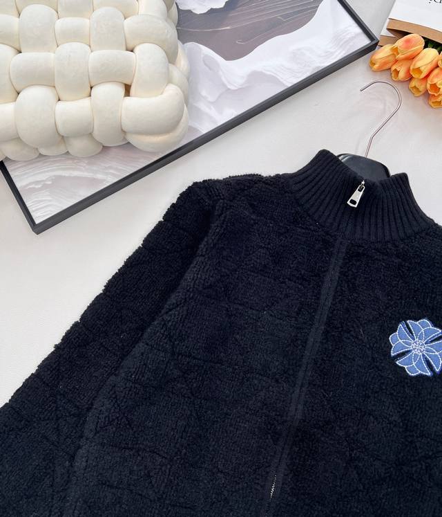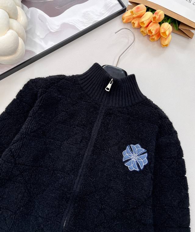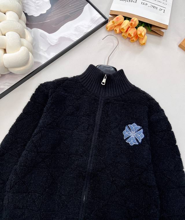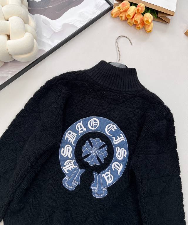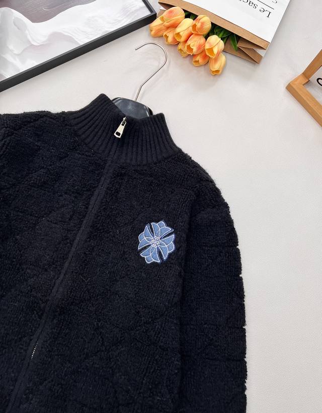 Chrome Hearts New Diamond Pattern Embroidered Knit Zipper Cardigan. Made of 100% wool, this cardigan is incredibly soft and comfortable. It creates a sophisticated look and adds a touch of style to any outfit this season. The simple design makes you look petite, and the thick fabric is flattering. You'll fall in love at first sight! The classic zipper design makes it easy to put on and take off without feeling bulky. It's highly practical as an inner or outer layer. It's very gentle and youthful, exuding a sophisticated, girlish charm. The classic stand-up collar and short design are flattering even for petite figures. The soft, pink texture is lovely. All tags are included. Available in bulk. Sizes S, M, L, D. Code K.