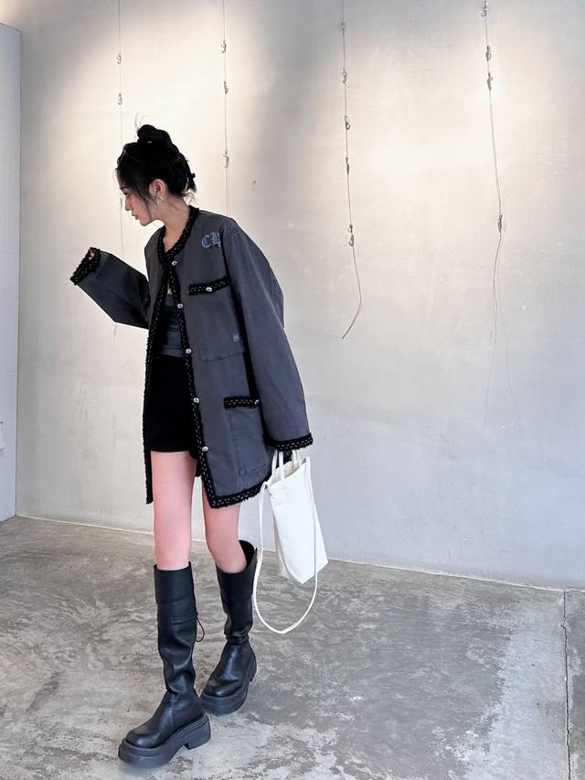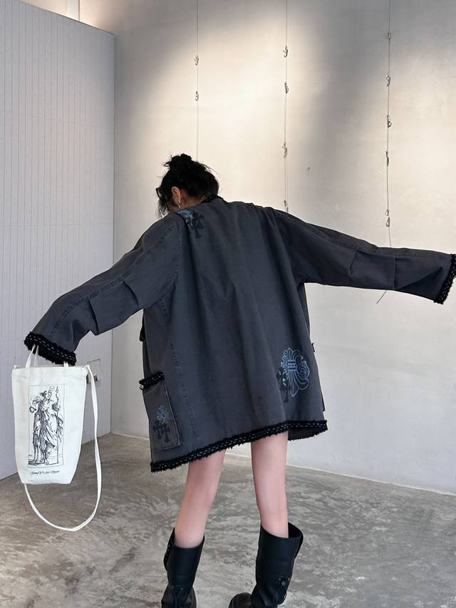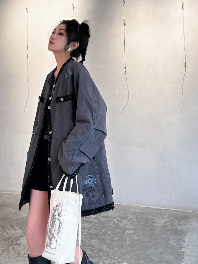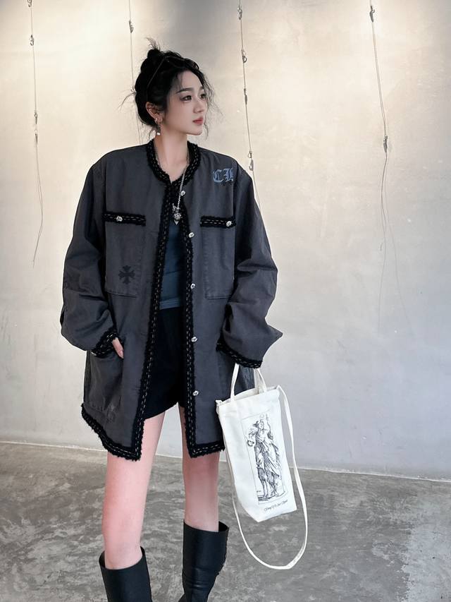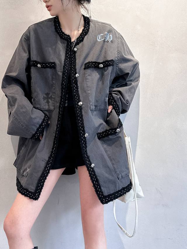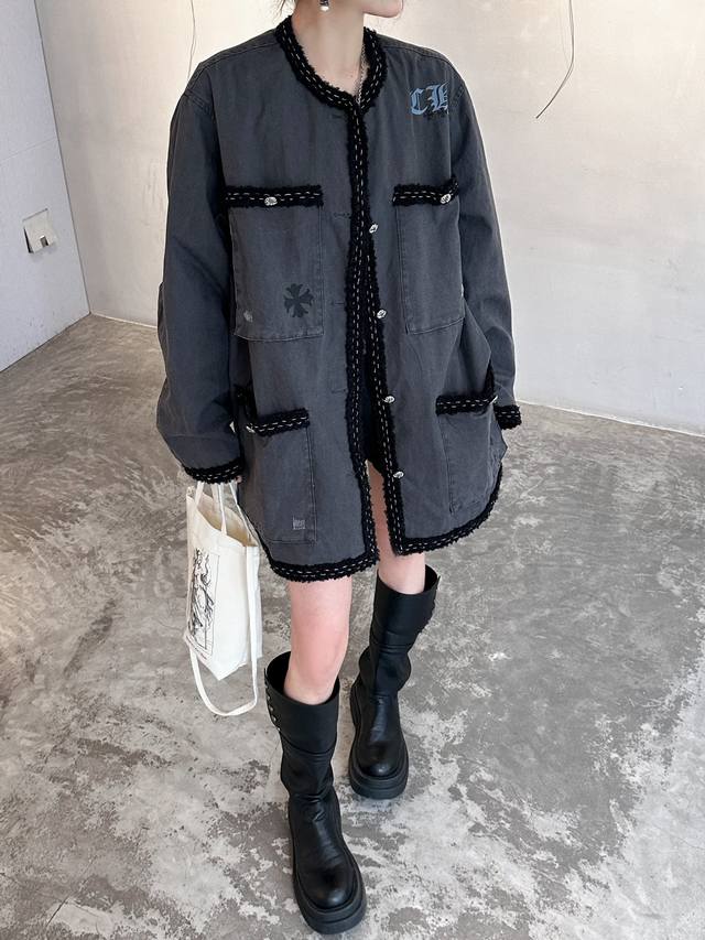 Chrome Hearts | New jacket, pure cotton denim fabric, thick and textured, custom-dyed fabric with cross logo, paired with custom hardware accessories, elastic hem, loose fit, unisex, sizes Sml