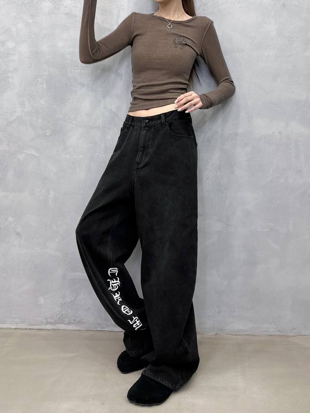 Chrome Hearts | New Jeans, garment washed with symmetrical embroidery, warm fleece-lined denim, unisex, sizes S, M, L, DDD