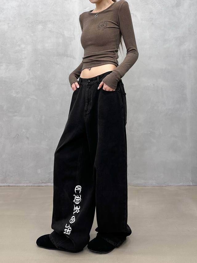 / Chrome Hearts | New Jeans, garment washed with symmetrical embroidery, warm fle