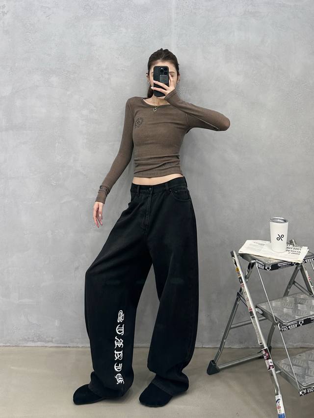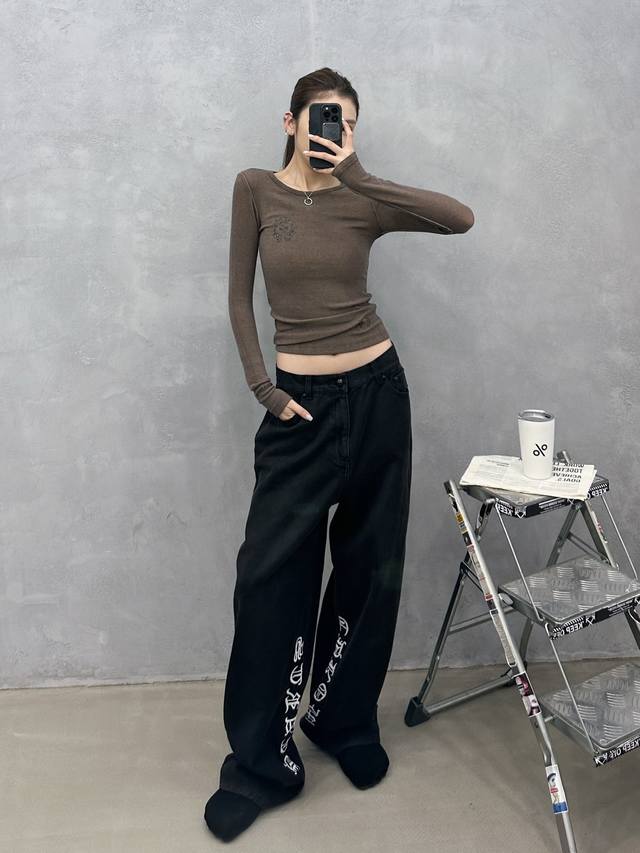 Chrome Hear*2025 New Arrival Fake Two-Piece Skirted Denim Pants. Custom Yb twill
