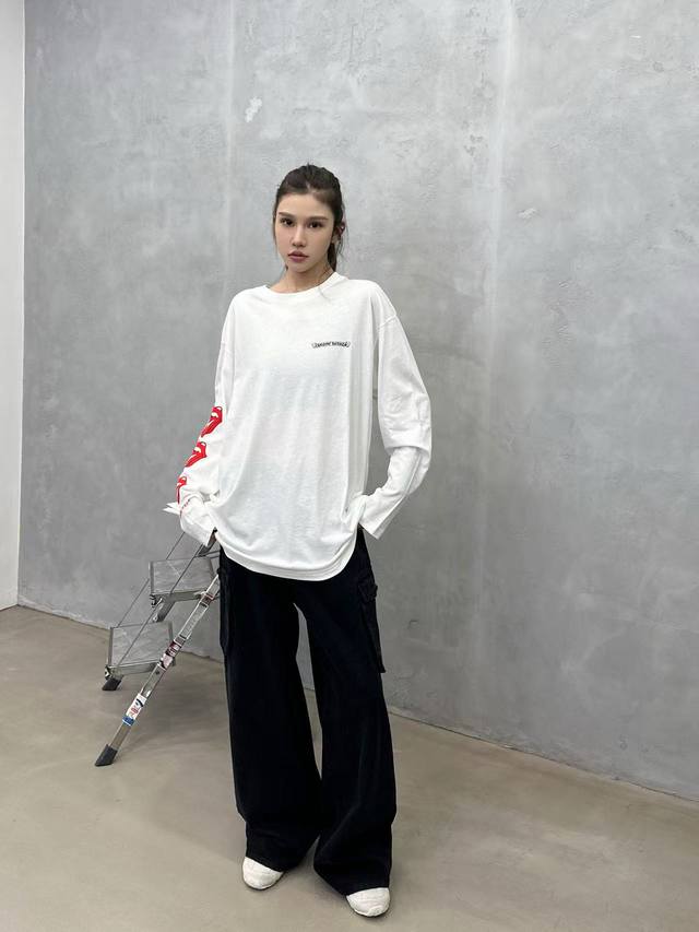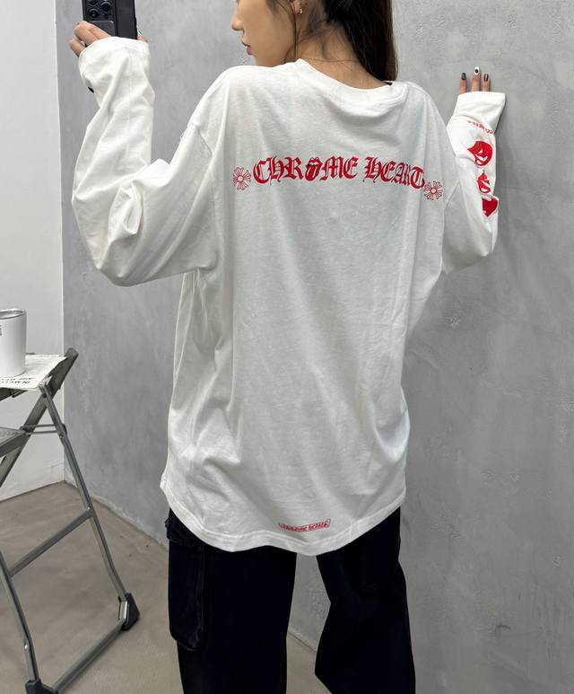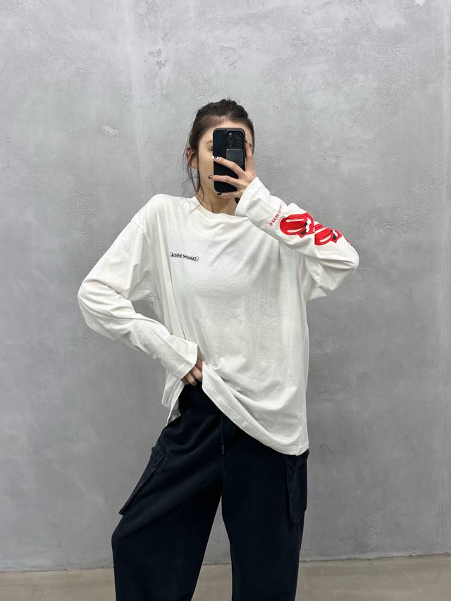 Chrome Hearts | New Long-Sleeve T-Shirt, garment-washed with 4 printed areas, made of imported Japanese linen and cotton fabric, unisex, sizes S, M, L, DDD