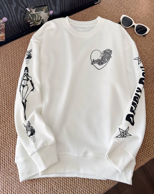 Product Name: Chrome Hearts x Deadlydoll Collaboration White Heart Limited Edition Sweatshirt DDD Size: M L DDD Color: White DDD A celebrity-inspired look, today's look is the same style worn by Xin Xinzi, a white Chrome Hearts limited edition sweatshirt. It features a heart pattern on the back, and looks much better than expected. The sleeves have a sexy cartoon print, and the white sweatshirt is adorable. A must-have for autumn and winter, the cut is excellent, a sophisticated and simple style, and white really makes you look gentle~ The sporty sweatshirt is full of youthful energy, making you look chubby and youthful. Chrome Hearts heart vine sweatshirt, simple and stylish, easily creating a sophisticated look! White is so refreshing, instantly transforming you into a sporty and youthful beauty. DDD Size Chart DDD M Shoulder width unlimited, bust 114cm, length 68cm DDD L Shoulder width unlimited, bust 118cm, length 70cm DDD Manual measurement error 1-2cm DDD