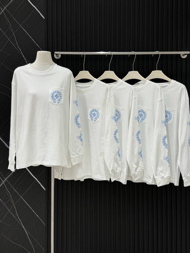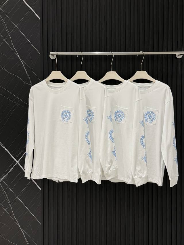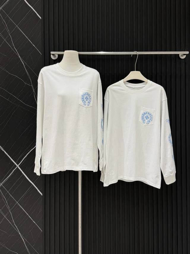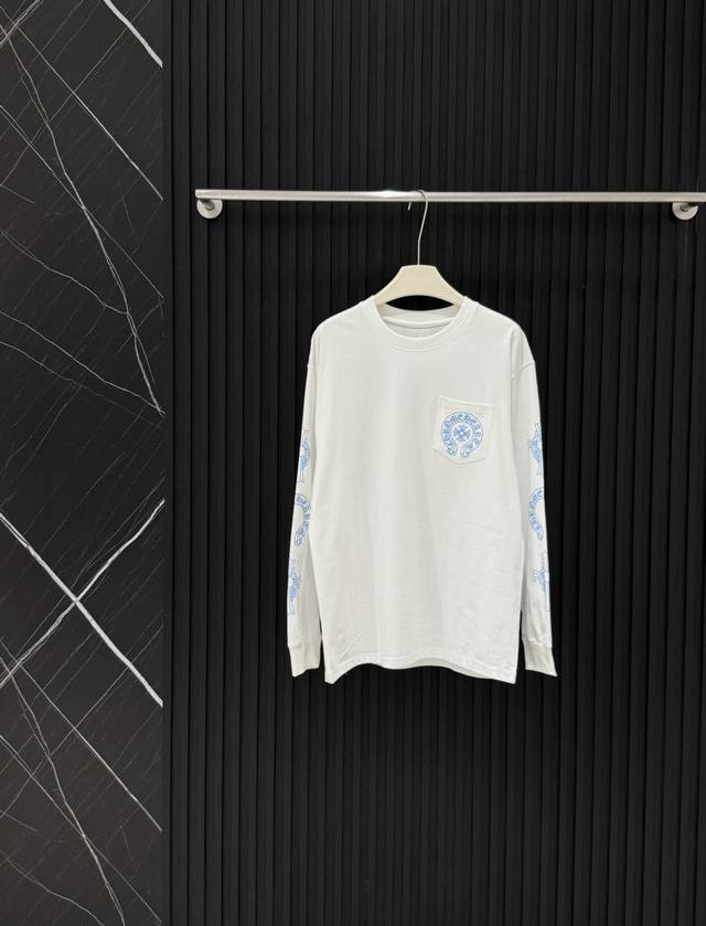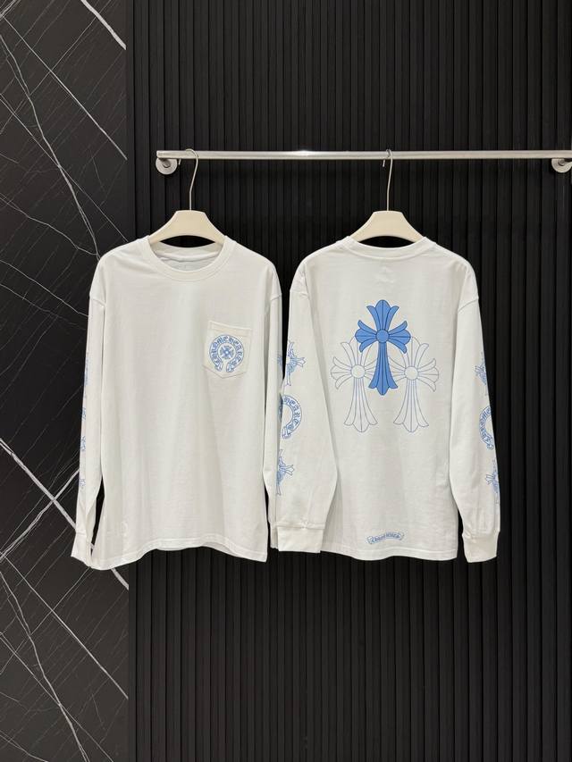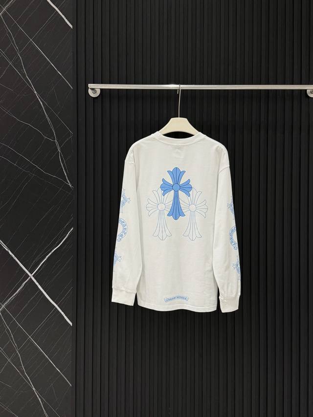 Style No. 3602 Pure cotton Chrome Hearts' fresh blue cross long-sleeved T-shirt
