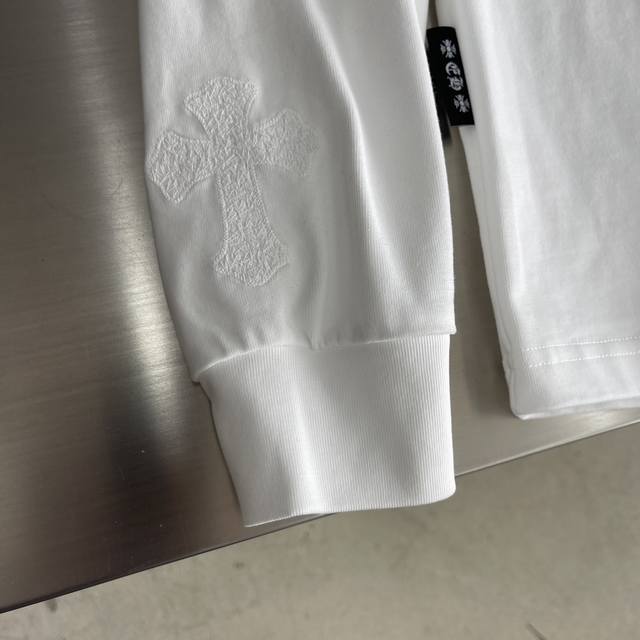 Ch Chrome Hearts Long-Sleeve Series DDD Sizes: M-5XL DDD Fit: Slightly Oversized DDD Weight: 270g DDD Composition: Carbon fiber brushed Roman cotton plain weave fabric with a smooth and clear texture and a crisp, structured feel DDD Craftsmanship: Random stitch embroidery embellishments on the front and back, continuing the summer style DDD