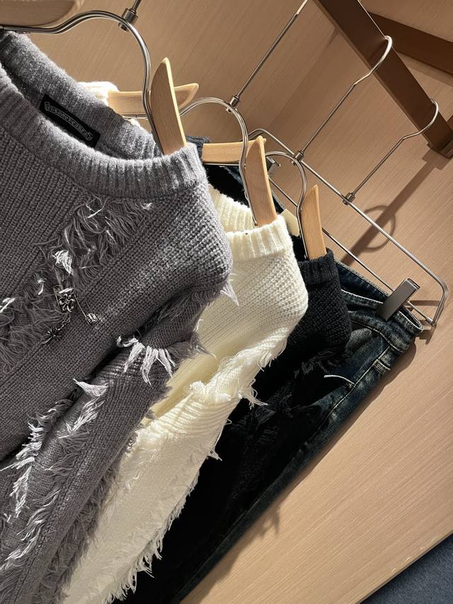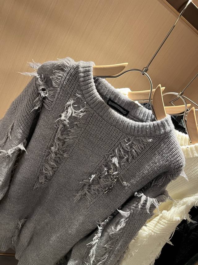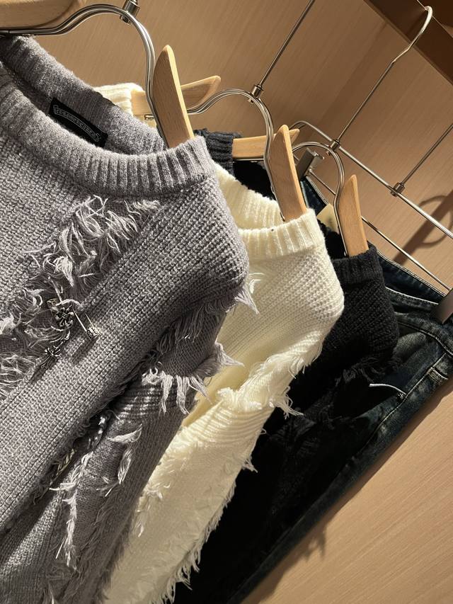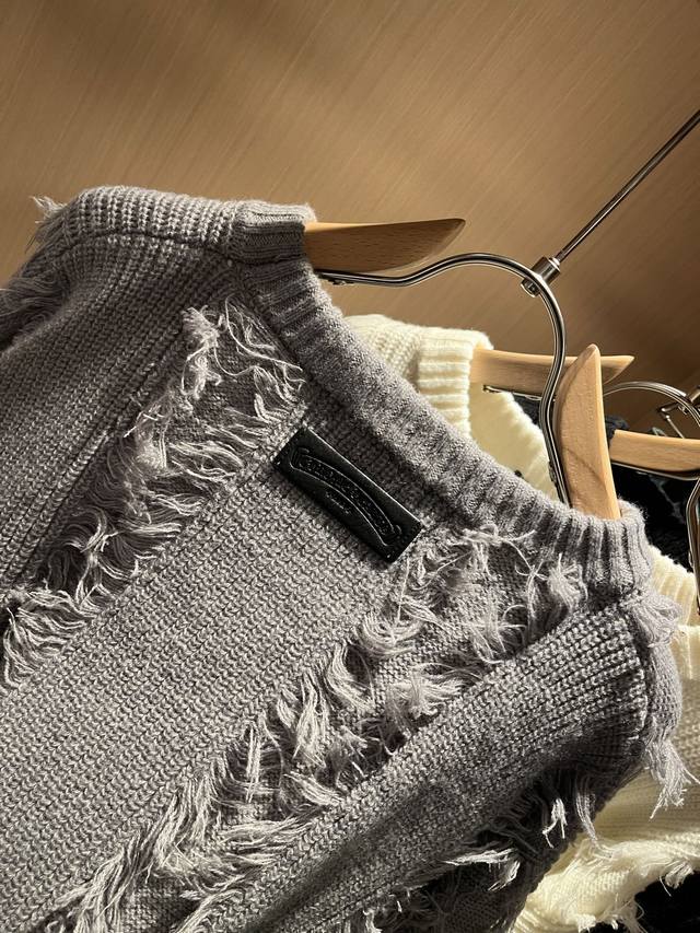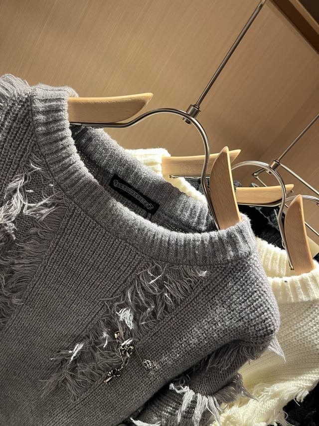 Chrome Hear*S 2025 Autumn/Winter New Unisex Knitted Wool Sweater. A must-have wool sweater for autumn and winter, one that will only become more precious with time. The king of high-street fashion, that's Chrome Hear*S. Wearing Chrome Hear is undeniably stylish; pair it with sweatpants for an ultra-cool look. Made from custom knitted wool, the fabric has an exceptional feel, offering unparalleled comfort. The logo and hardware design on the garment are universally flattering, exuding a casual and chic vibe while enhancing style and appearance. The sweater style pairs well with various types of shoes. Its distinctive design is easily recognizable, durable, and wear-resistant, with meticulous craftsmanship. Sizes: M-3XL DDD