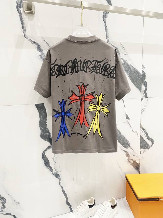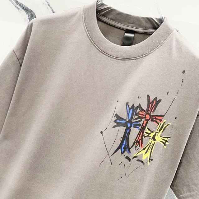 Chrome Hearts 320g washed short-sleeve topColorful cross Sanskrit logo printed o