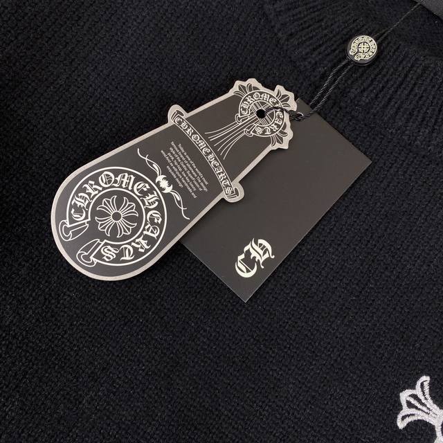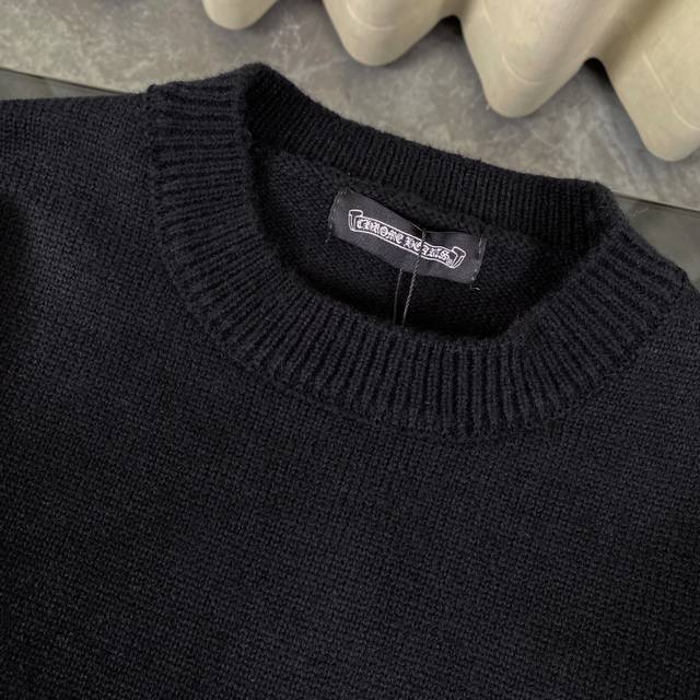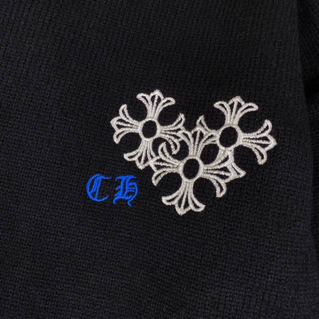 Chrome Hearts Ch Chrome Hearts embroidered disc Sanskrit cross ripped knit sweater pullover