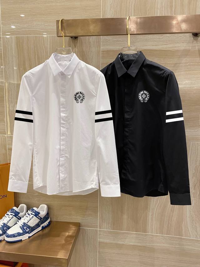 Chrome Hearts' latest must-have long-sleeved shirt for men, 100% natural cotton, comfortable and breathable, original single product, original fabric, soft and comfortable, high-end and luxurious upper body, enough grade for the scene, this shirt is proud to make you satisfied and face-saving Size: 38S 39M 40L 41Xl 42Xxl Black and white 2 colors