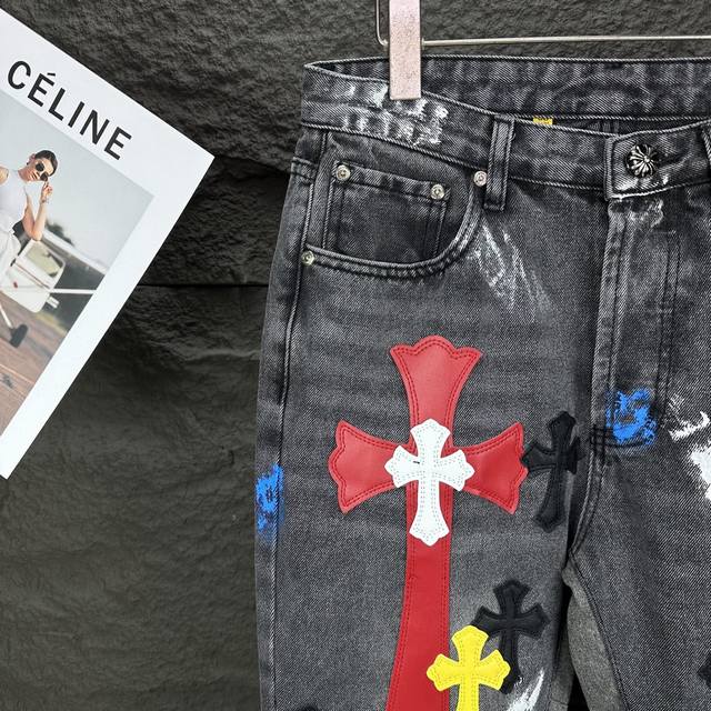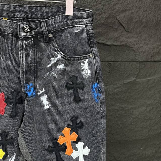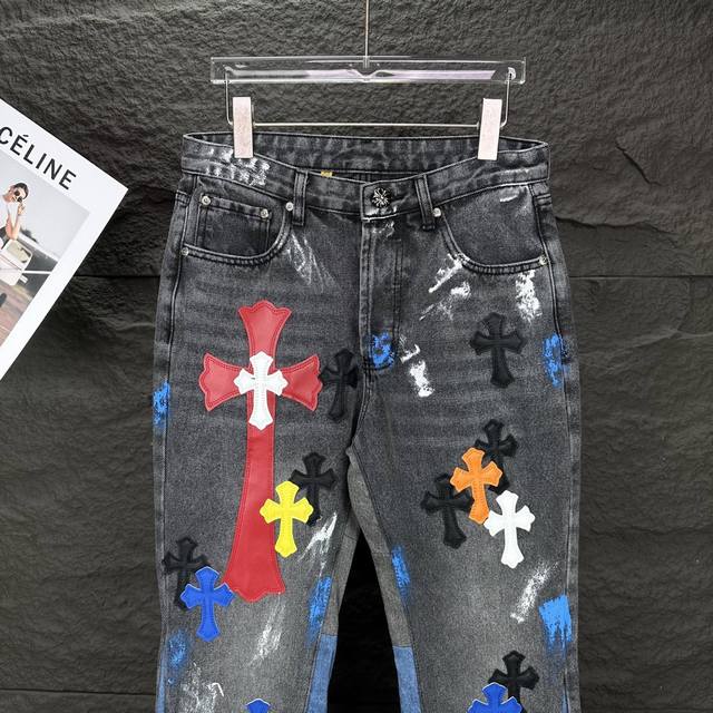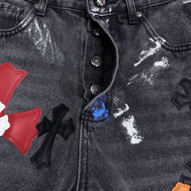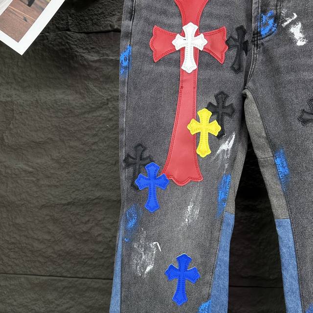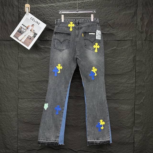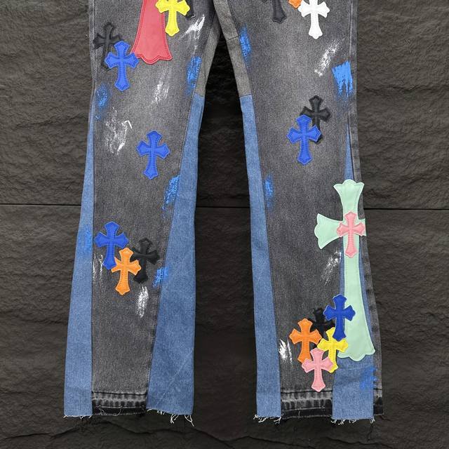 Gallery Dept. & Chrome Hearts 2025 Limited Edition Patchwork Hand-Painted Cross and Leather Couple's Flared Jeans