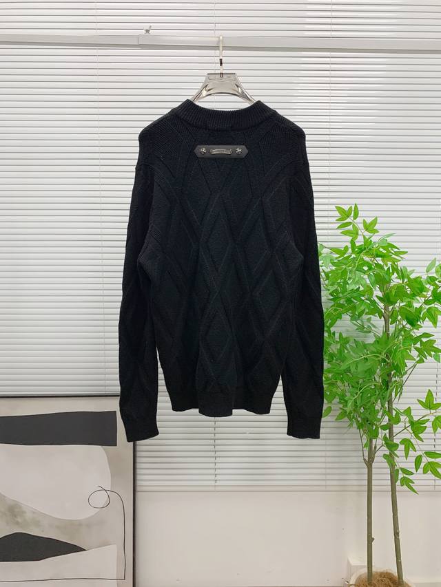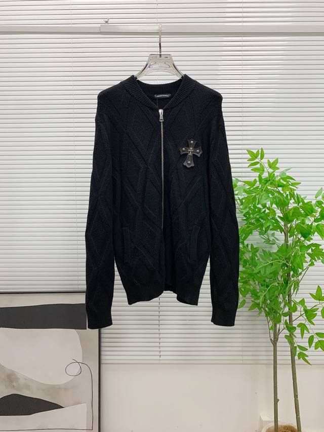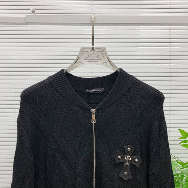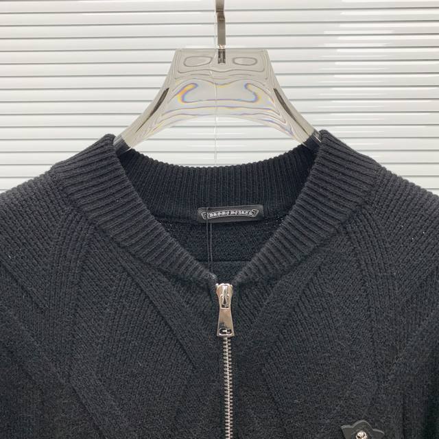 S Chrome Hearts Black Diamond Pattern Wool Coat. Classic baseball collar + zipper design, casual yet stylish. Colors: Black, White. Sizes: M-3XL. Recommended size: L for someone 175cm tall and weighing 140kg.
