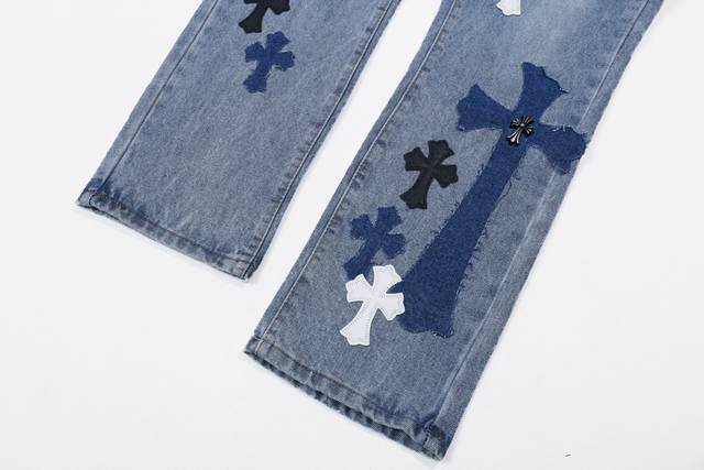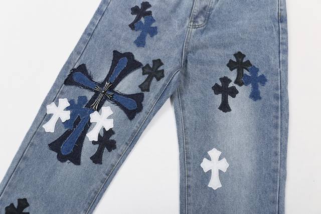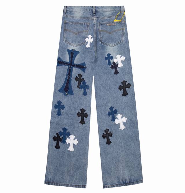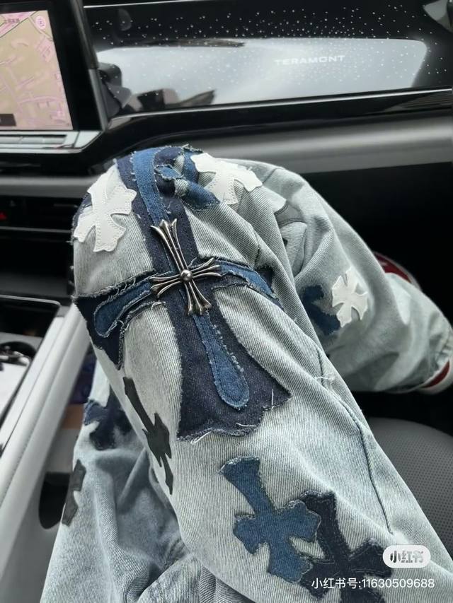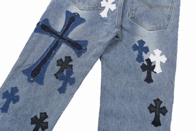 Chrome Hearts X Sexrecords Chrome Hearts Metal Leather Cross Washed Cow King Exhibition Limited Edition Jeans