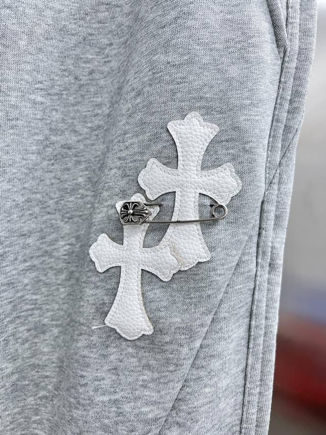 20903# Chrome Hearts 2026 Spring/Summer New Casual Pants Exclusive Custom Heavyweight Fabric Classic Leather Label Embroidery Positioning Hardware Logo Matching Craftsmanship Color: Black/Grey Size: M-4XL