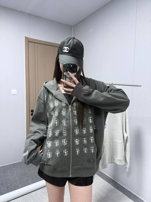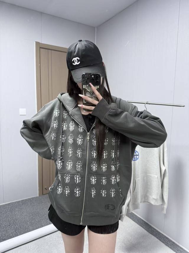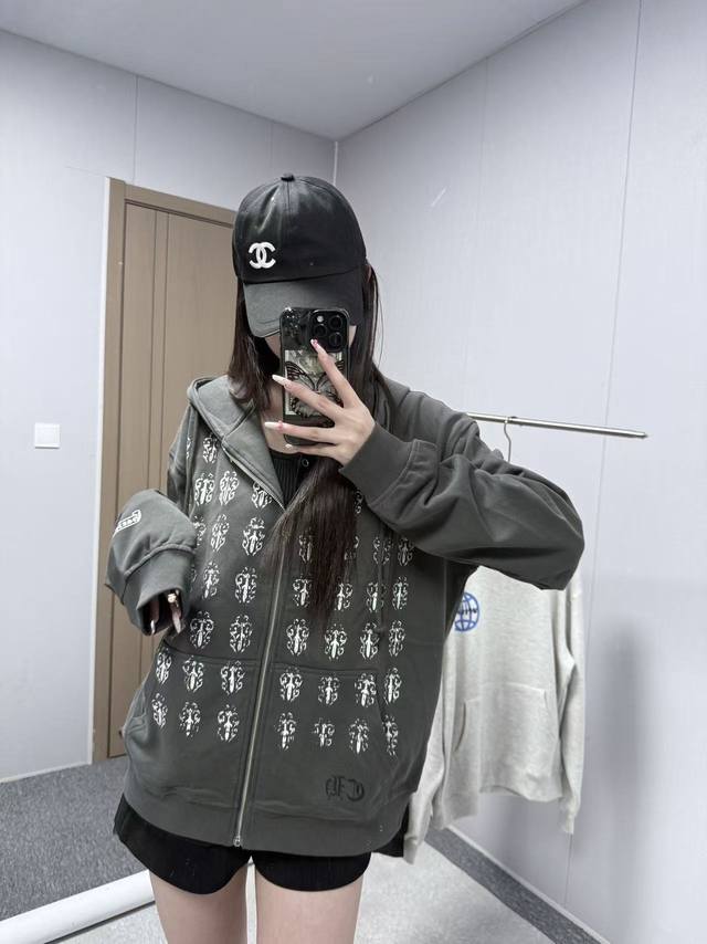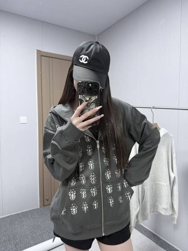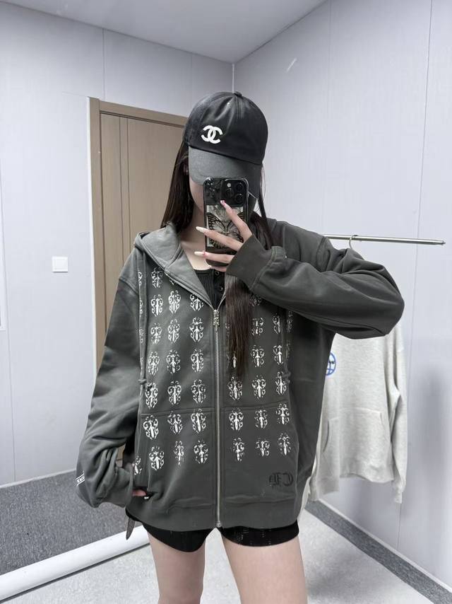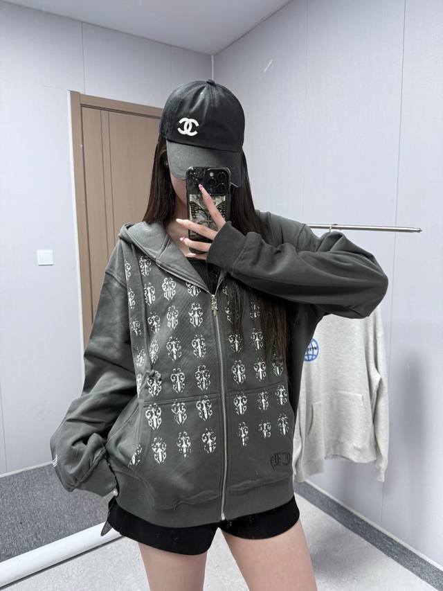 8117 Chrome Hearts is an American luxury brand founded in 1988 by Richard Stark and his wife Laurie Lynn Stark. It started with exquisite silver jewelry and has gradually developed into a diversified brand encompassing silver jewelry, leather goods, clothing, eyewear, and home furnishings. The front and back prints use original imported vertical plastisol and a full set of custom-made accessories, combined with oval machine screen printing technology. The cuffs and hem are custom-made with original 350G ribbing. The fabric is custom-dyed and dyed to match the original 380G 32-count fine cotton terry cloth. 100% Cotton Chrome Hearts Boat Print Zip-Up Hooded Sweatshirt, Black. Sizes: S (Chest 61cm, Length 66cm, Sleeve 57cm, Shoulder 53cm), M (Chest 63cm, Length 68cm, Sleeve 58cm, Shoulder 54.5cm), L (Chest 65cm, Length 70cm, Sleeve 59cm, Shoulder 56cm), XL (Chest 67cm, Length 72cm, Sleeve 60cm, Shoulder 57.5cm). Recommended for sizes 170cm and under (80-130kg): S (170-175cm, 130-150kg), M (175-180cm, 150-170kg), L (180-185cm, 170-190kg), XL (180-185cm, 170-190kg).