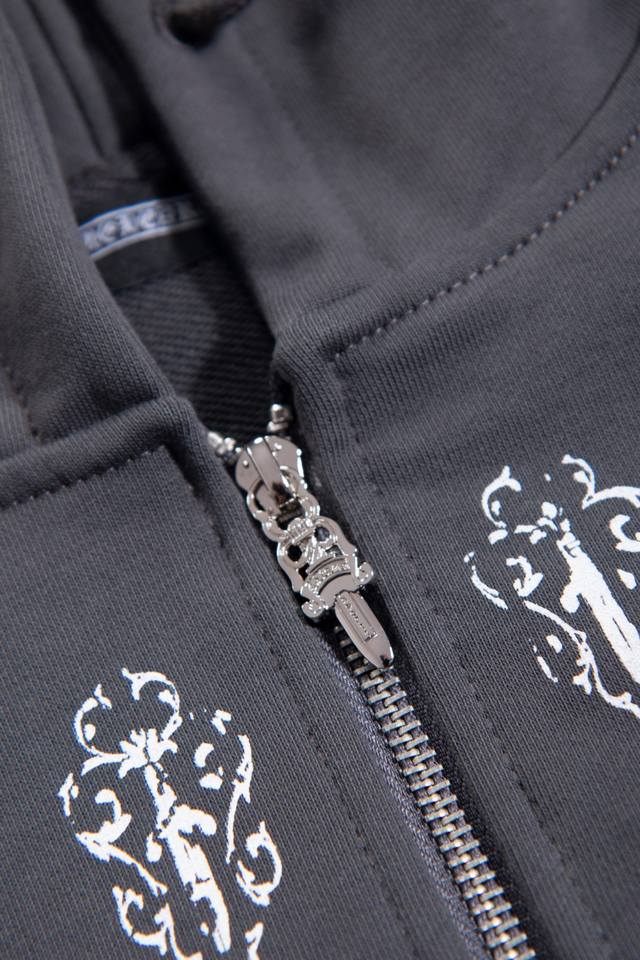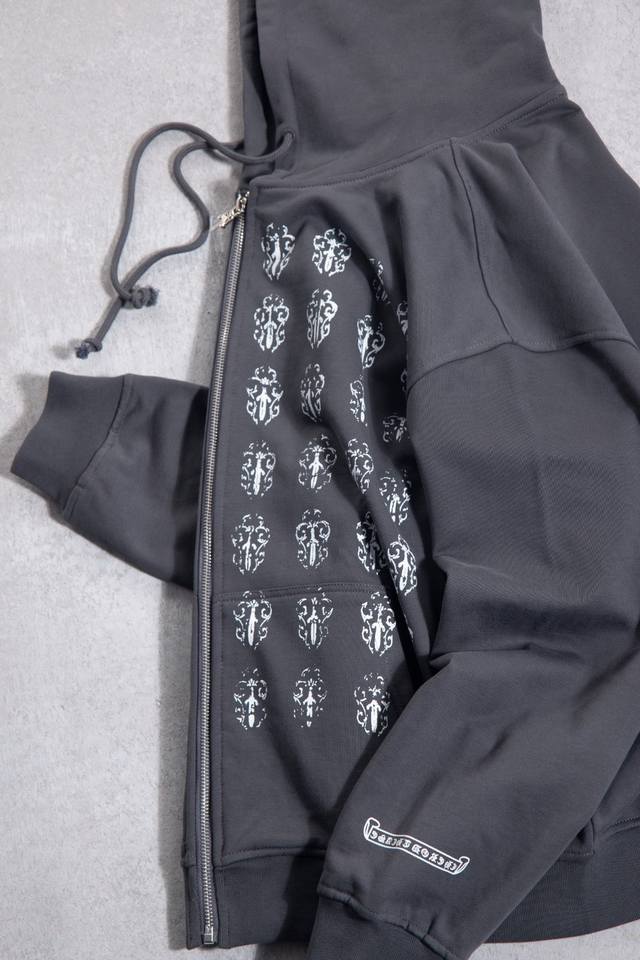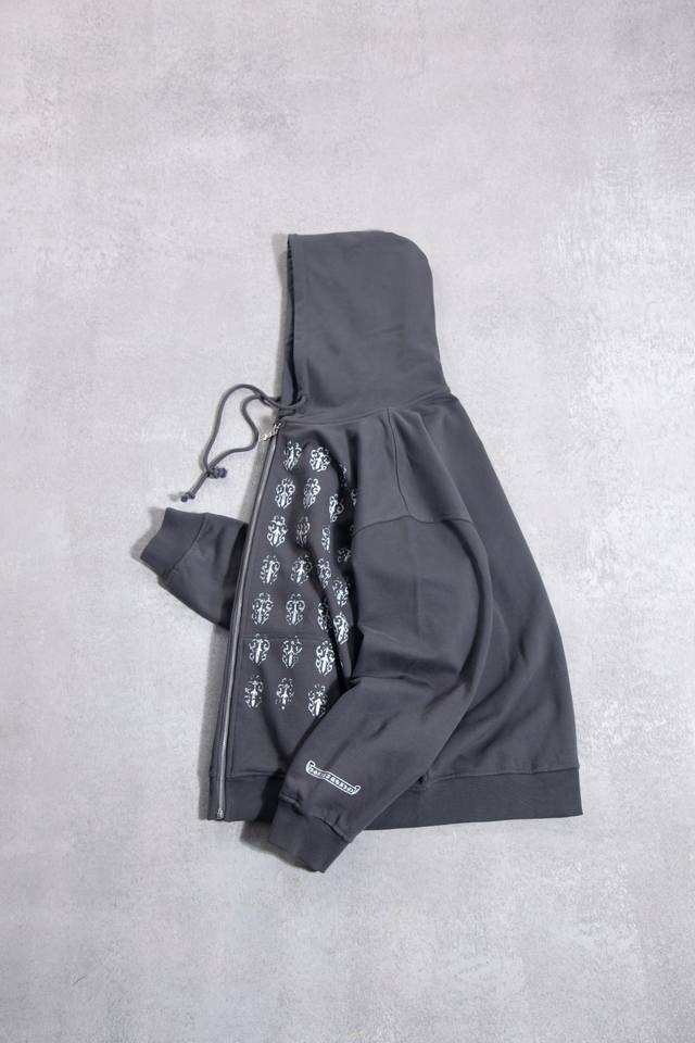 8117 Chrome Hearts is an American luxury brand founded in 1988 by Richard Stark and his wife Laurie Lynn Stark. It started with exquisite silver jewelry and has gradually developed into a diversified brand encompassing silver jewelry, leather goods, clothing, eyewear, and home furnishings. The front and back prints use original imported vertical plastisol and a full set of custom-made accessories, combined with oval machine screen printing technology. The cuffs and hem are custom-made with original 350G ribbing. The fabric is custom-dyed and dyed to match the original 380G 32-count fine cotton terry cloth. 100% Cotton Chrome Hearts Boat Print Zip-Up Hooded Sweatshirt, Black. Sizes: S (Chest 61cm, Length 66cm, Sleeve 57cm, Shoulder 53cm), M (Chest 63cm, Length 68cm, Sleeve 58cm, Shoulder 54.5cm), L (Chest 65cm, Length 70cm, Sleeve 59cm, Shoulder 56cm), XL (Chest 67cm, Length 72cm, Sleeve 60cm, Shoulder 57.5cm). Recommended for sizes 170cm and under (80-130kg): S (170-175cm, 130-150kg), M (175-180cm, 150-170kg), L (180-185cm, 170-190kg), XL (180-185cm, 170-190kg).