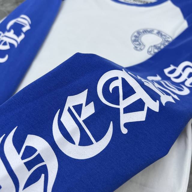 8592# New Arrival! Ddd Chrome Hearts Long-Sleeve T-Shirt Series! Ddd Available Simultaneously with Stores! Fabric Fully Upgraded!! Ddd Chrome Hearts Horseshoe Blue and White Color Block Raglan Long-Sleeve T-Shirt Ddd Imported Eco-Friendly Printing Ddd 1:1 High-Gross Original Fabric Ddd Recommended Color: Blue and White Color Block Ddd Sizes: S, M, L, XL DDD