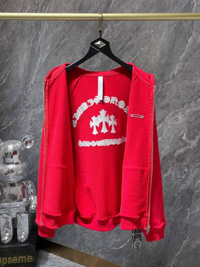 8622# New Arrival! Chrome Hearts Autumn/Winter 2025 - Same Style as in Stores! Red U Sailin On Zip-Up Sweatshirt - Improved Custom Version, 1:1 High-Quality Fabric. Recommended Colors: Red, Black. Sizes: S, M, L, XL.