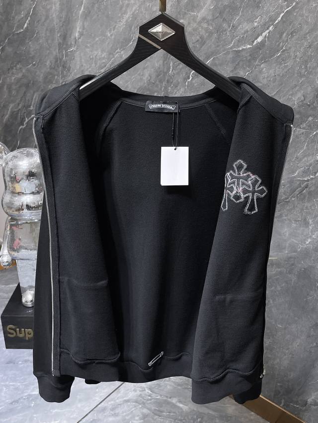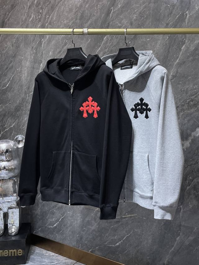 8652# New Arrival! Ddd Chrome Hearts Ddd Same Style as Tony Leung Ddd Chrome Patchwork Leather Cross Long-Sleeve Zip-Up Sweatshirt Ddd Improved Custom Version 1:1 High-Gross Premium Fabric Ddd Recommended Colors: Black, Gray Ddd Sizes: S, M, L, XL DDD