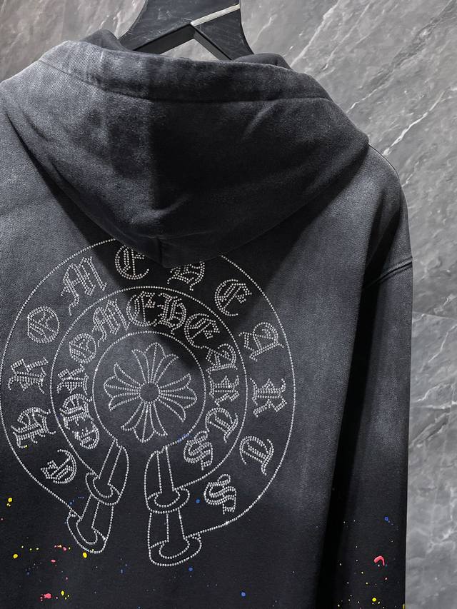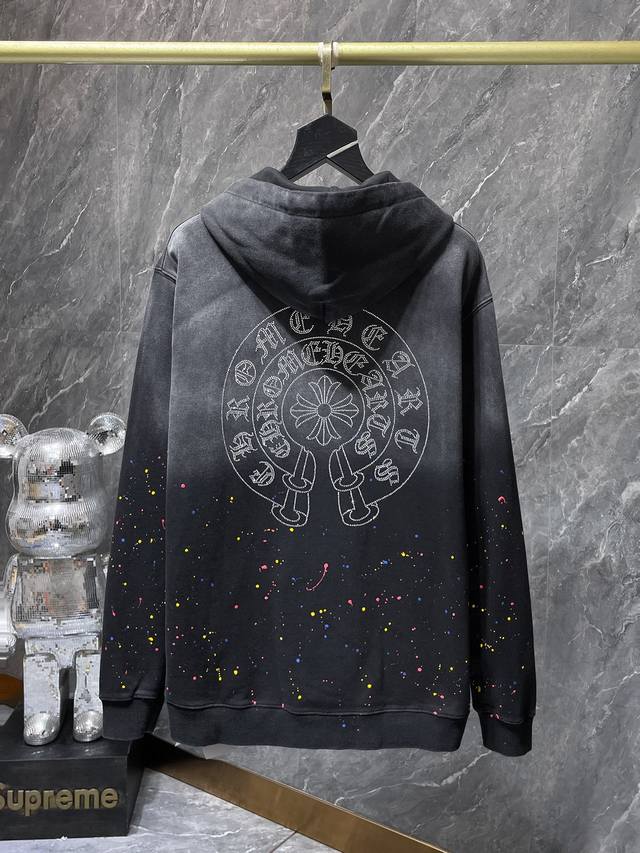 8673# New Arrival! Ddd Chrome Hearts Autumn/Winter 2025! Highest quality version, same as in stores! Ddd Chrome Hearts Cross Horseshoe Gradient Washed, Splattered, Rhinestone Heavy-Duty Sweatshirt. Ddd Improved Custom Version, 1:1 High-Gram Weight Premium Fabric. Ddd Recommended Colors: Gradient Black, Gradient Pink, Gradient Green. Ddd Sizes: S, M, L, XL.