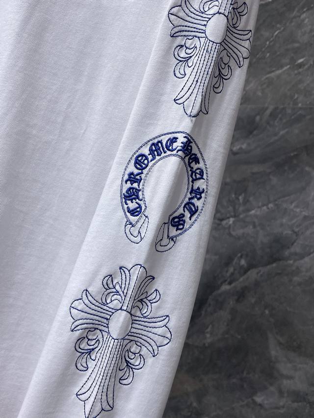 8695# New Arrival! Ddd Chrome Hearts Long-Sleeve T-Shirt Series! Ddd Available Now at Department Stores! Fabric Upgraded!! Ddd Long-Sleeve T-Shirt with Blue Cross Embroidered Arms and Horseshoe Embroidery. Ddd Replica Version, 1:1 High-Gram Original Fabric. Ddd Recommended Colors: Black, White. Ddd Sizes: S, M, L, XL.