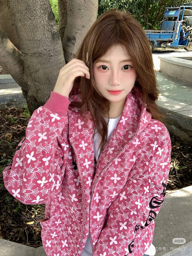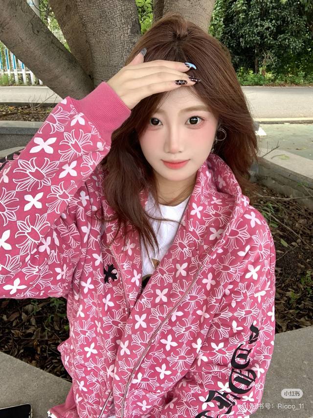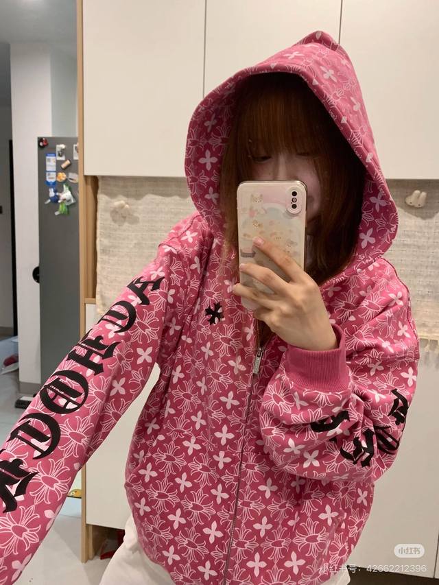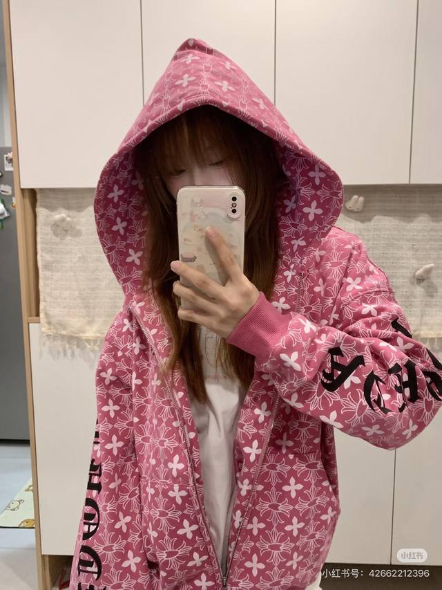 Autumn/Winter Fleece-Lined Cardigan from Chrome Hearts - New All-Over Print Pink Cross Horseshoe Cardigan, Unisex. Made of soft and comfortable cotton fabric, with a three-dimensional design. It won't deform, change color, or pill after washing; it's antibacterial and stain-resistant! Features include a thick fleece lining, inner patch, original stitching, embroidery, and a silver invisible zipper. Superior workmanship, just as exquisite as the model photos. Buy with confidence! Color: Pink. Sizes: L, XL, XXL. Length: 72cm, 74cm, 76cm. Chest: 126cm, 130cm, 134cm. Shoulder Width: 64cm, 62cm, 66cm. Sleeve Length: 55cm, 56cm, 57cm.