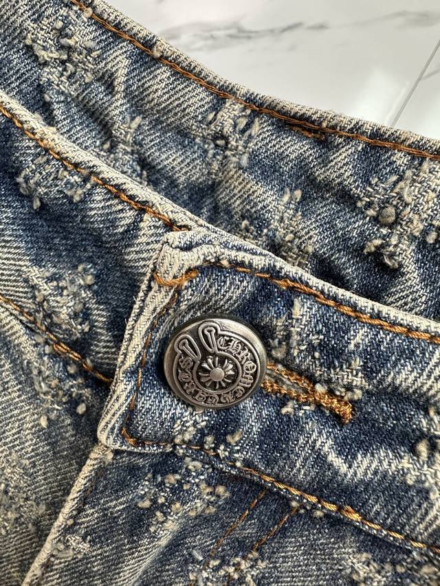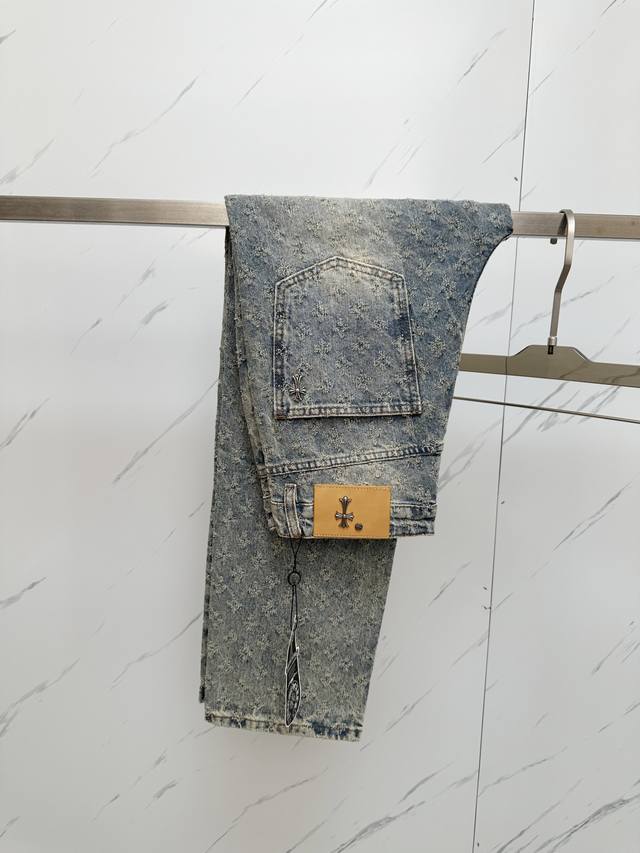 Available simultaneously at Chrome Hearts official website and stores. A top-quality original item, these incredibly stylish jeans feature custom-made original washed denim fabric, a unique design, top-tier printed logo, and original hardware. An exceptionally high-end pair, these jeans boast luxurious materials and exquisite craftsmanship, exuding a high-class feel. They look great on and are highly recommended. Sizes: S 3XL DDD