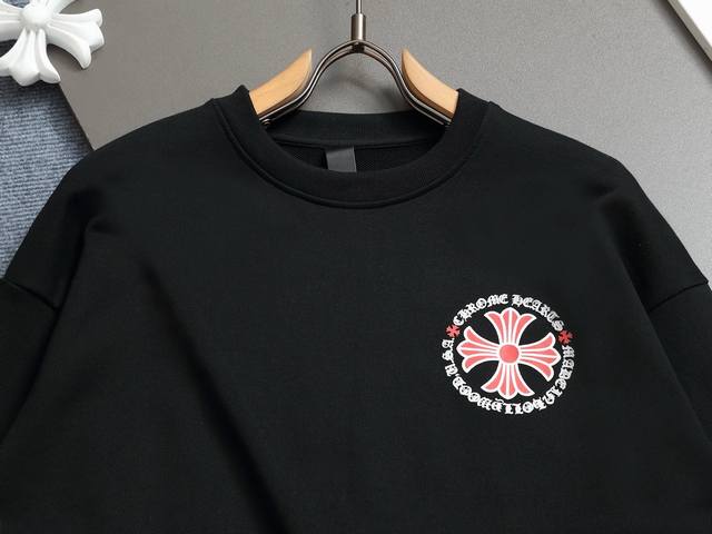 Chrome Hearts Cross Print Crewneck Sweatshirt. This style features a loose, stylish fit, unlike the lower-end versions, which are slimmer and have a flattering fit. We guarantee top quality, not fast-food. We offer the highest quality on the market. This top-quality, 420g, 26s/count custom-dyed double-yarn cotton is available for both men and women, with all three labels. Colors: Black, White, Sizes: XS-L.