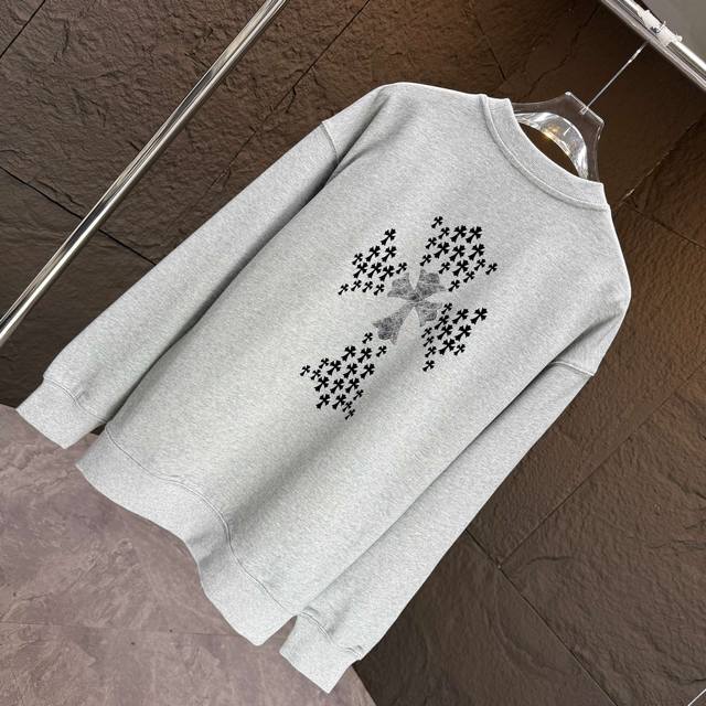 Ch* Chrome Hearts* Ddd 2025 Autumn/Winter New Crew Neck Sweatshirt Ddd 400g Terry Cotton Sanskrit Horseshoe Logo Flocked Silver Thread Ddd Colors: Black, White, Gray, Purple Ddd Sizes: S, M, L, XL, XL DDD