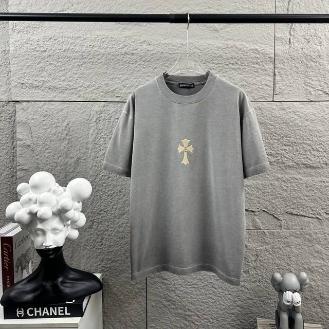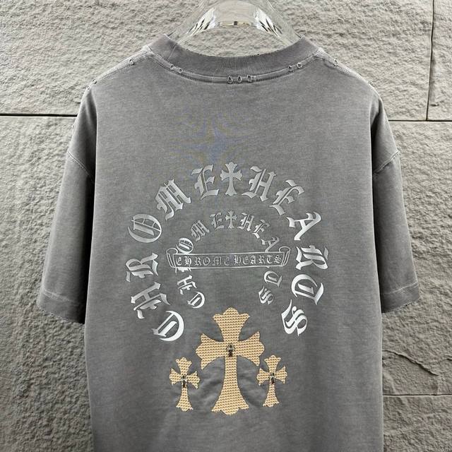 Ch *Chrome Hearts 2025 Spring/Summer New Heavy Distressed Washed Style Distressed Cross Horseshoe Applique Embroidery + Thick Plate 3D Silicone Craft Custom Pure Cotton Fabric Short Sleeve T-Shirt Unisex Size: S 100-140 lbs M 130-160 lbs L 150-175 lbs XL 160-185 lbs XXL 180-220 lbs Color: Washed Gray Washed Purple Washed Pink Washed Black