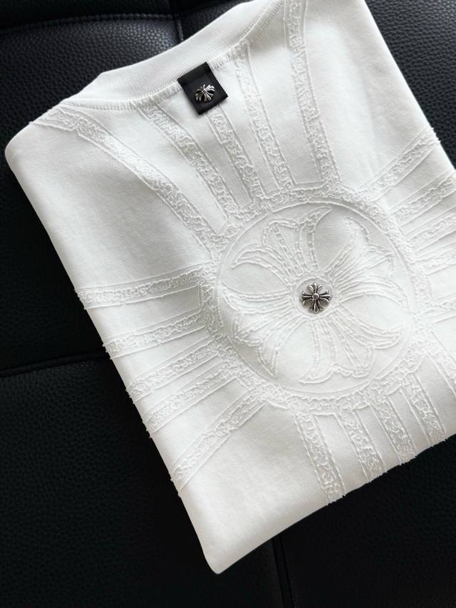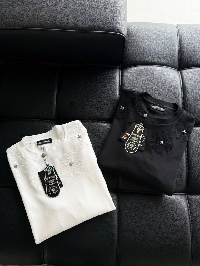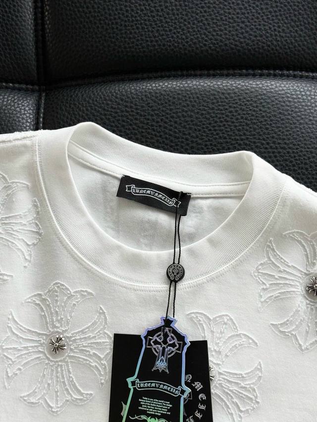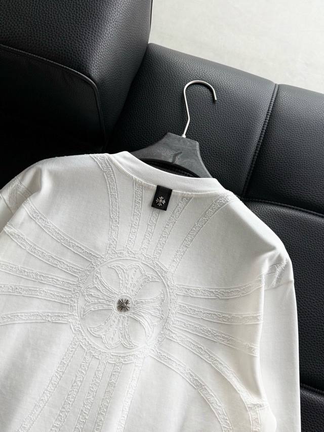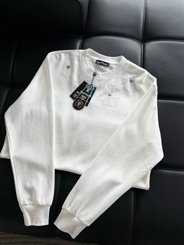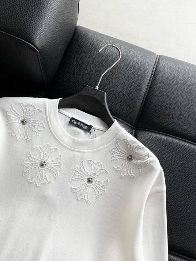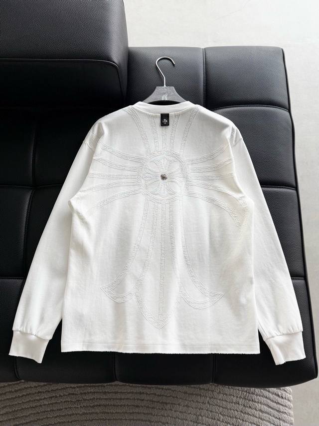 Ch Chrome Hearts Cross Horseshoe Chrome Hearts Sanskrit Burnished Washed Distressed Long Sleeve Textured Pattern Trendy Brand Original Fabric Laser Burnished Applique Embroidered Letters Exquisite Embroidery Excellent Bestseller.