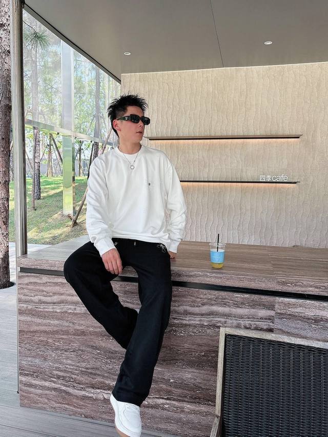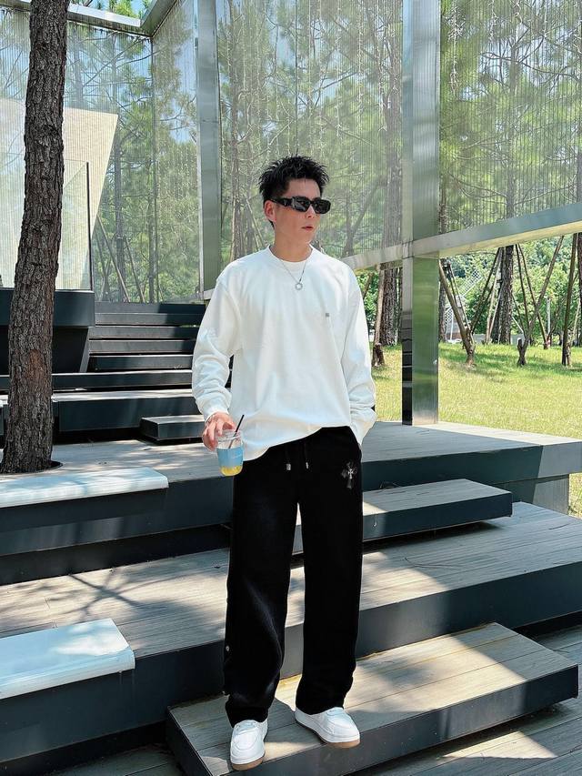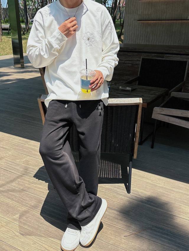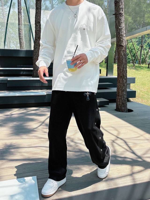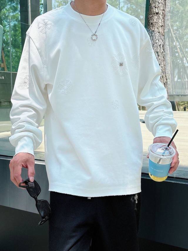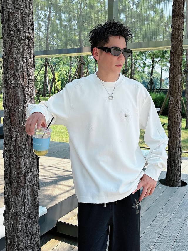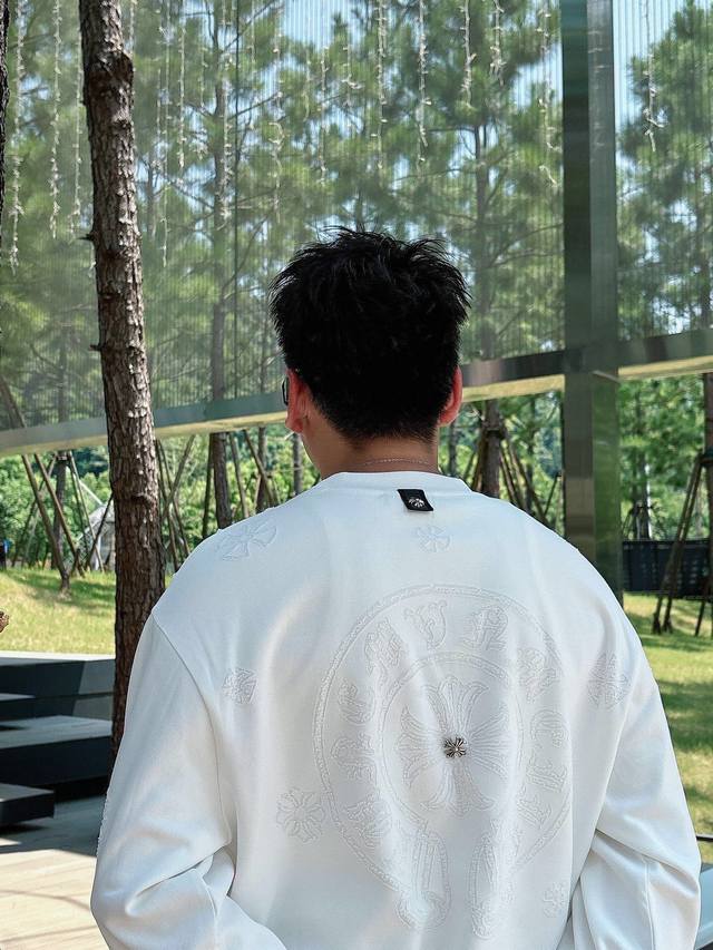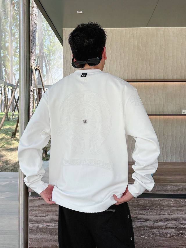 Ch Chrome Hearts Cross Horseshoe Chrome Hearts Sanskrit Burnished Washed Distressed Long Sleeve Textured Pattern Trendy Brand Original Fabric Laser Burnished Applique Embroidered Letters Exquisite Embroidery Excellent Bestseller. DDD Colors: Black White DDD Sizes: M-3XL DDD Style Number: 3571 DDD
