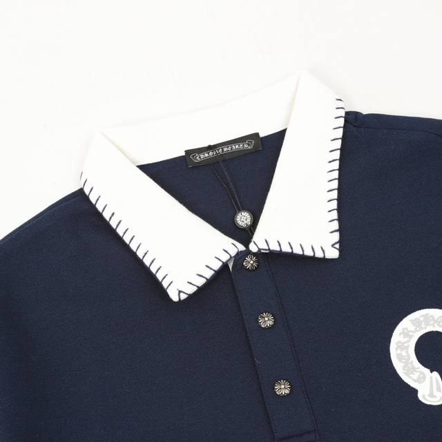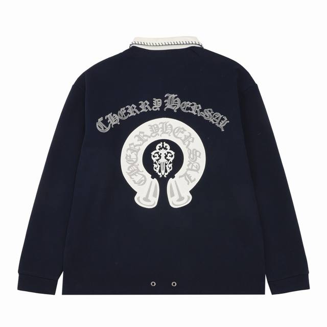 Ch Chrome Hearts Horseshoe Embroidered Collar Long-Sleeve Polo Shirt Ddd Size: SL DDD