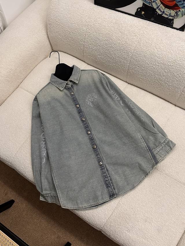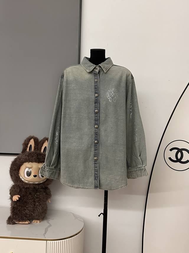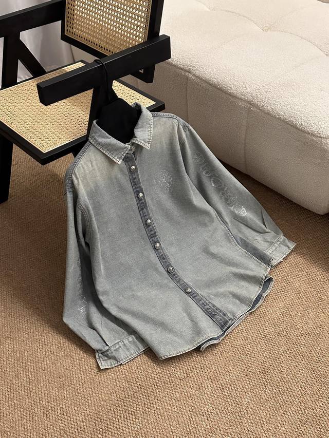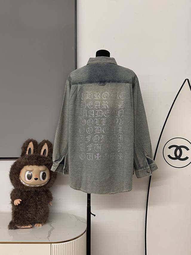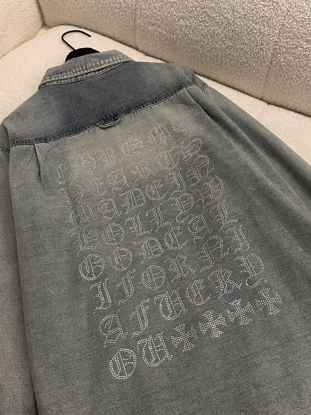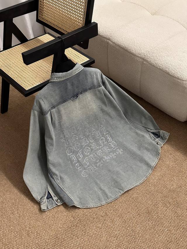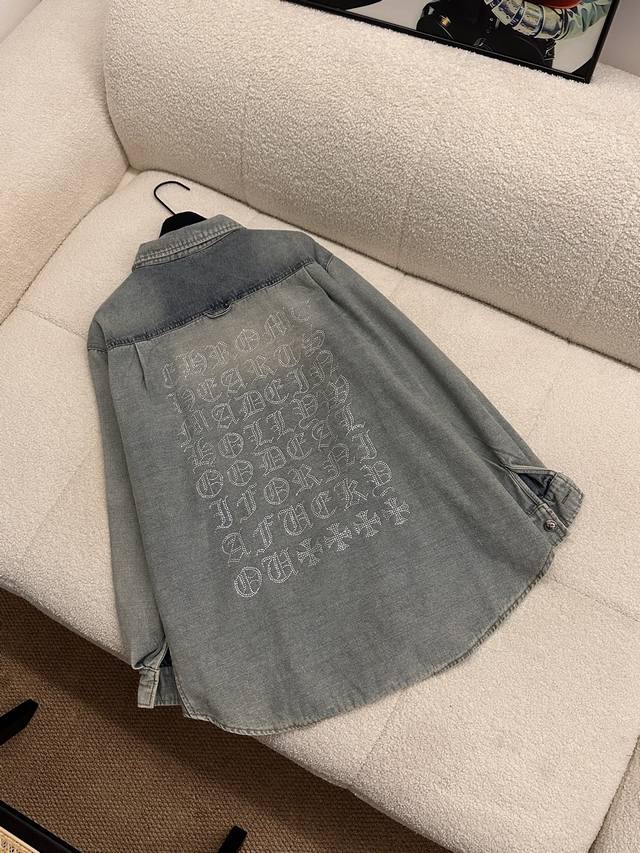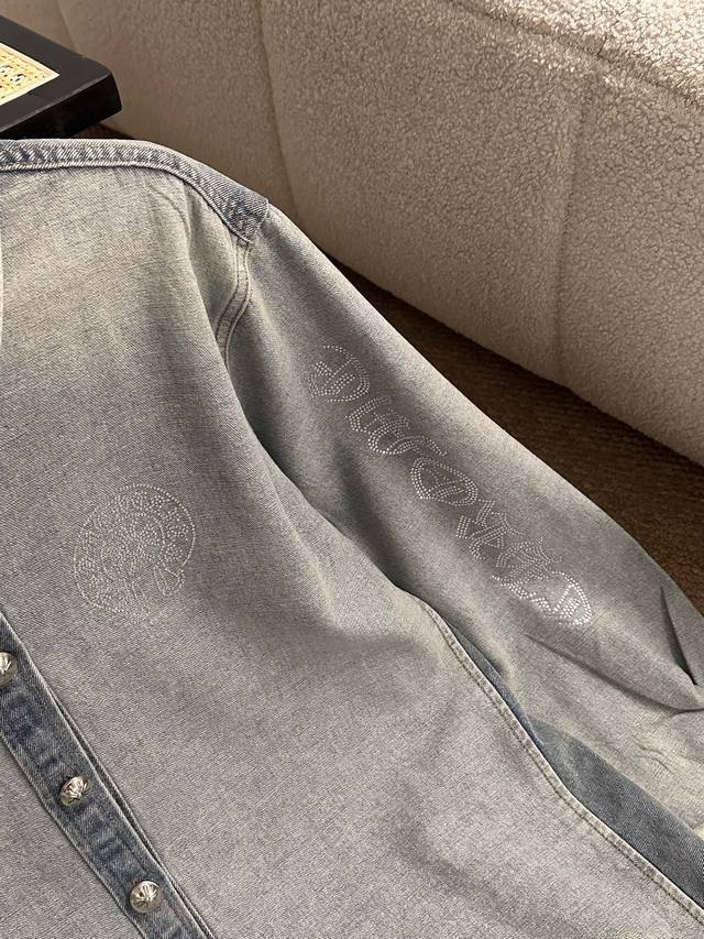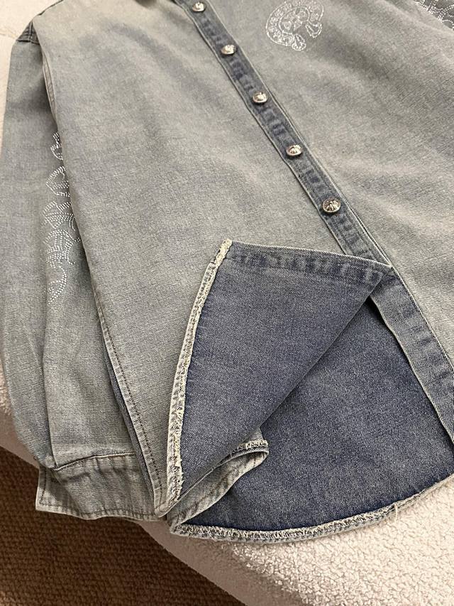 The whole body is decorated with rhinestones, which is heavy and high-end, making it stunning at first sight and the most shining presence in the crowd. The oversized version can be worn by both men and women. The nostalgic and retro denim shirt will not go out of style in 10 years. The color and style are modern and age-reducing, and it is not picky about the wearer. The double-breasted placket opens and closes. The cuffs are a closed version, which can be worn with rolled-up sleeves. The hem is divided into a curved shape, longer in the middle and shorter on both sides. The whole piece has neat visible lines and requires very high craftsmanship.