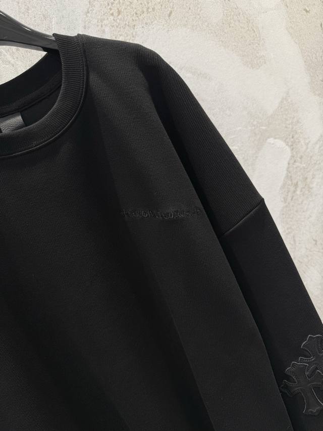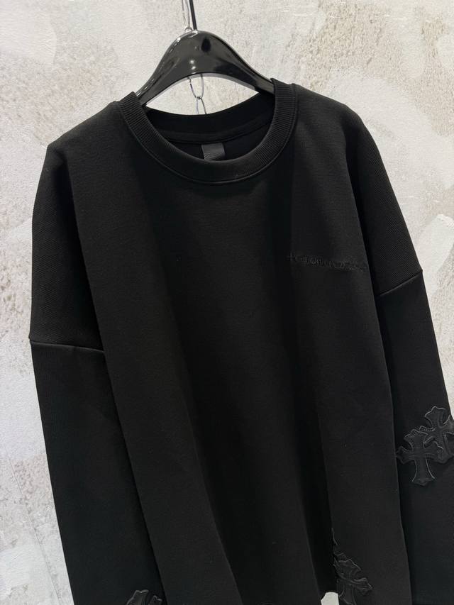Ch Chrome Hearts, High-End Customization! Chunky Knit Crew Neck Sweater with Lea