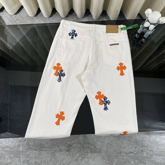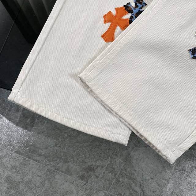 Ch Chromehearts 2025 new St.Barth limited edition Ch red and blue leopard cross stitching leather jeans