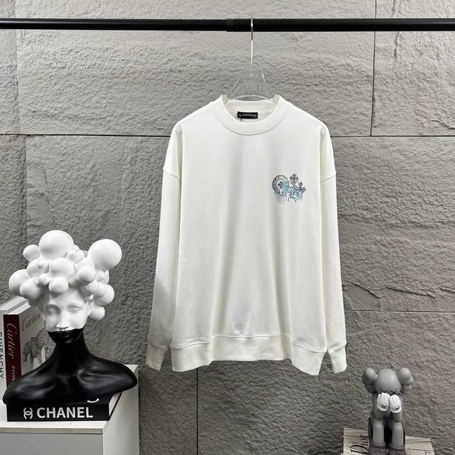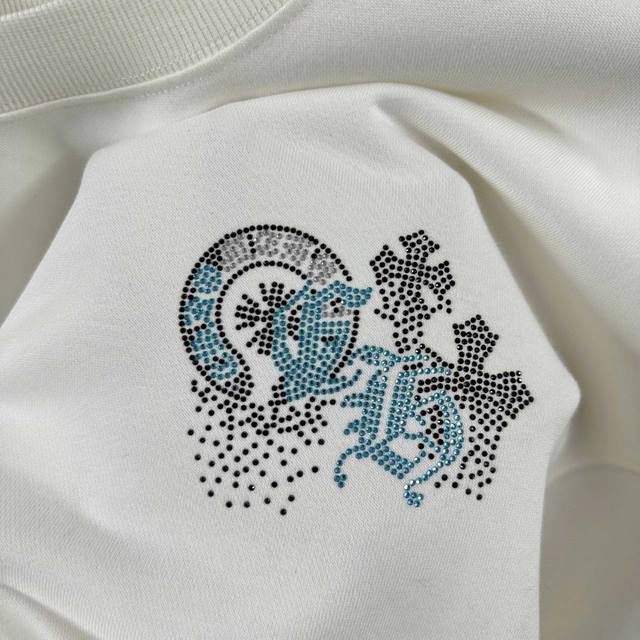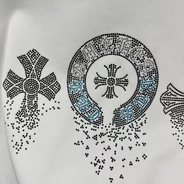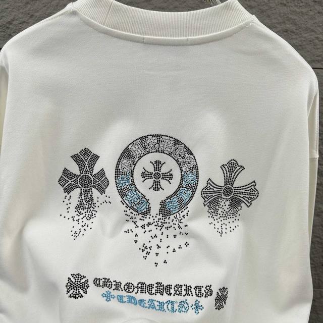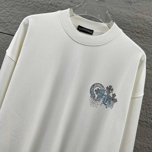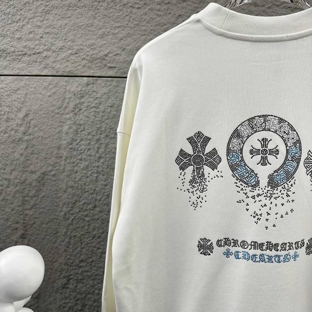 Ch*Chrome Hearts*2025 Early Autumn/Winter New Classic Horseshoe Cross Sanskrit 3D Hot Rhinestone Process Custom Terry Fabric Long Sleeve Crew Neck Pullover Sweatshirt, Unisex. Colors: Black, White. Sizes: S 90-130 lbs, M 120-150 lbs, L 140-165 lbs, XL 160-180 lbs, XXL 180-210 lbs.