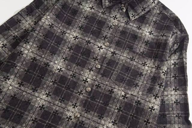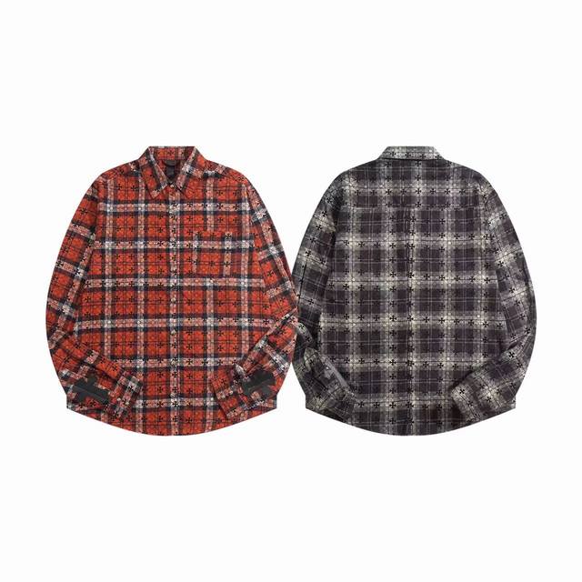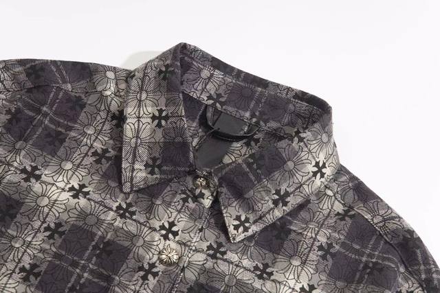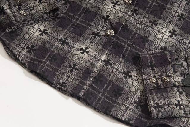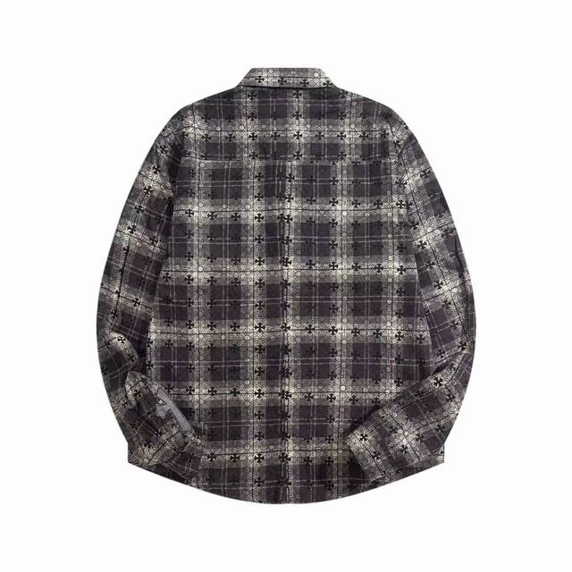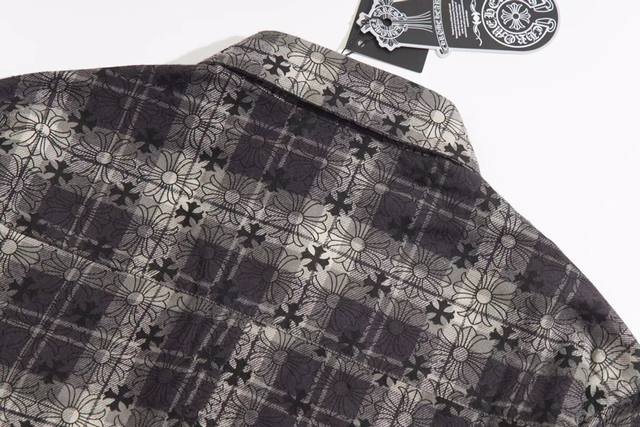 Chr*Me Hea*Ts Ch Crocs Heart Leather Label Metal Checkered Shirt Jacket Ddd Original replica of Crocs Heart's unique identity embellishment with silver buckle and cross leather patch, custom-dyed dark patterned fabric, high-quality matching checkered pattern cut, cross leather patch on the sleeves, custom high-quality engraved hardware, distressed vintage silver buckle, three-dimensional cut. Looks both cool and stylish. The natural high-street style speaks for itself; the vibrant design and versatility ensure a surprising look no matter how you style it! Sizes: Xs, S, M, L, DDD