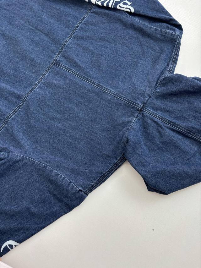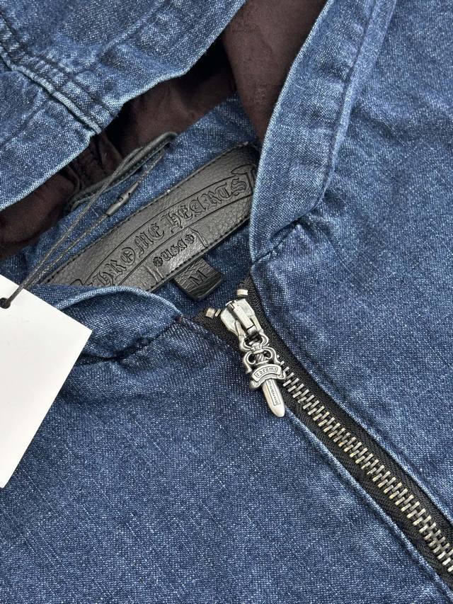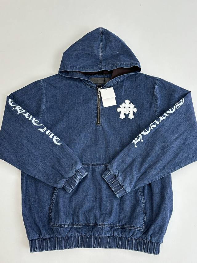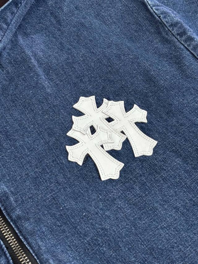Chrome Heart* Chrome Hearts Ch Half-Zip Patchwork Color-Blocked Denim Jacket DDD Original version, in stock in China, purchased for 34,000 RMB, extremely high development cost. Fabric: Italian imported high-density pure cotton twill denim jacquard lining, minimum order quantity per kilometer, extremely high wastage. Print: Hand-printed using plastisol according to the original design. Key features: Hand-stitched sheepskin cross, extremely high gold content, genuine antique silver distressed chain pull. Key features: Zipper pull sprayed with silver distressed DDD Size: SML DDD