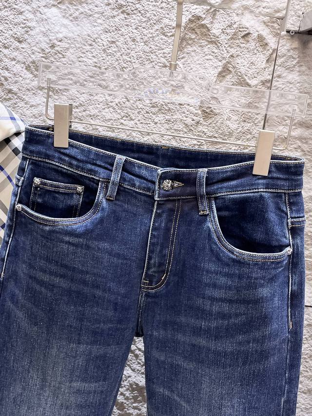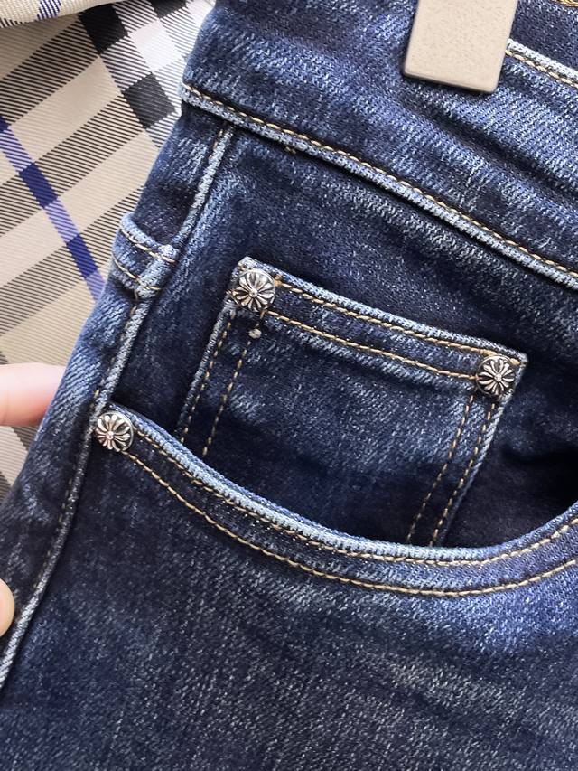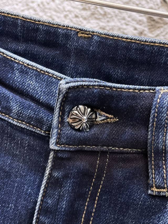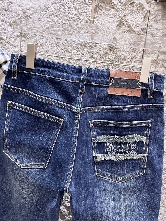 Chrome Hearts 2025 Autumn/Winter New Arrival High-End Jeans, Original European Quality, High-Quality Item. Made with imported custom-made high-end washed fabric, high-elasticity, breathable and comfortable. Impeccable workmanship and edging details. Brand elements and design concepts embody high quality. Delicate and soft to the touch, presenting a casual cut, looks amazing on, slim fit. Sizes: 28-38 (35 available).