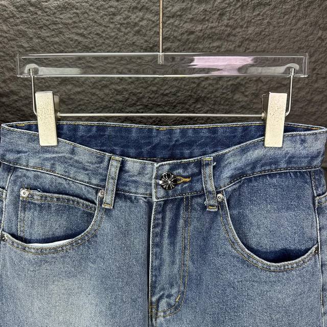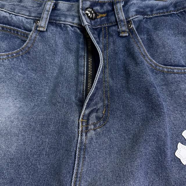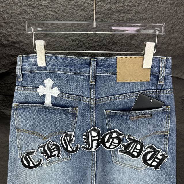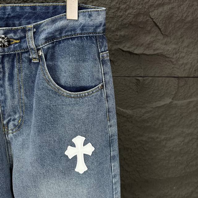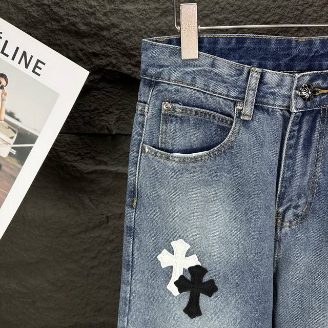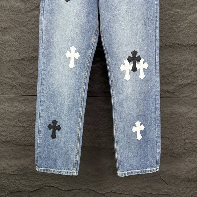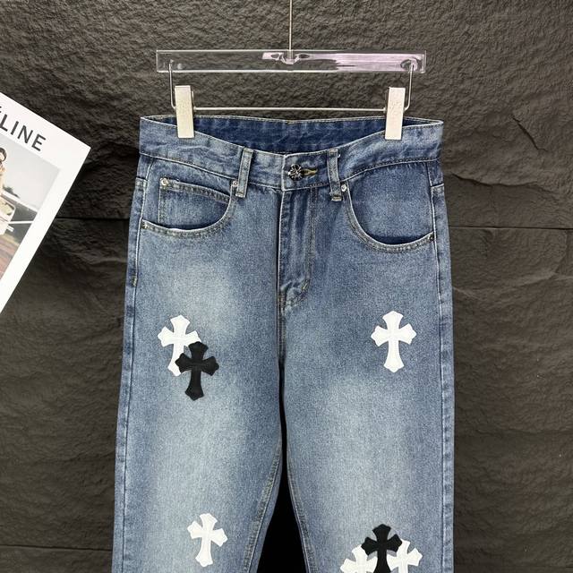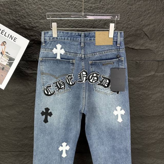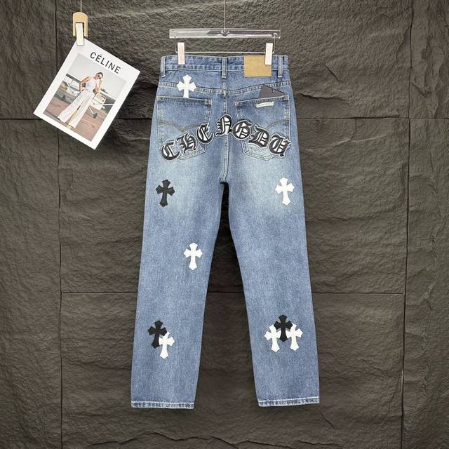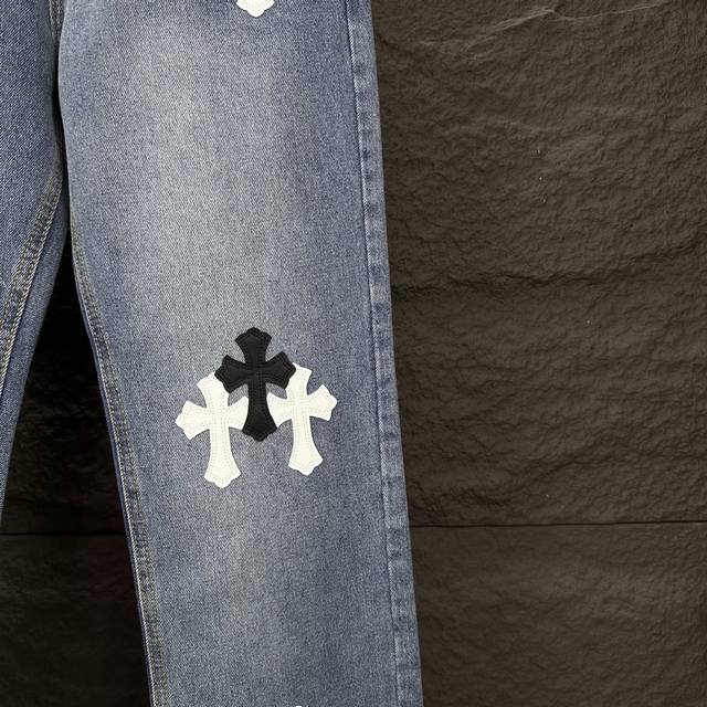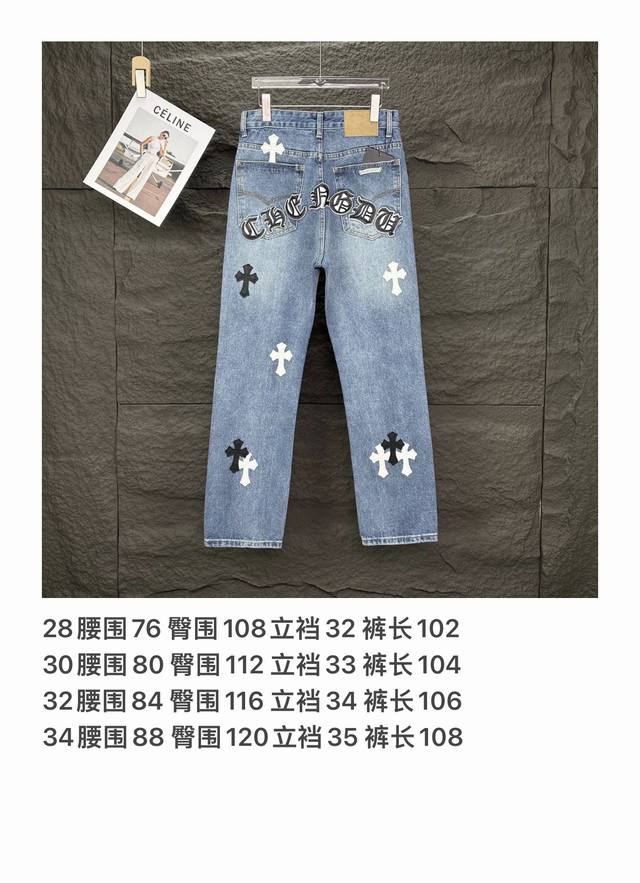 Chrome Hearts 2025 New Black Sanskrit Cross Patchwork Couple Style Washed Jeans Ddd High Version High Version Ddd Top-Tier Quality Ddd Different wash textures, very friendly to both slim and thick legs. The straight leg cut is very flattering and the perfect length is timeless. It's easy to style and a basic piece for various looks. A must-have in your wardrobe! Ddd The fabric is sturdy yet soft against the skin, and the washing process is top-notch. A must-have for everyone!!! Ddd Washed jeans with tags, labels, and thongs all included Ddd Color: Blue Ddd Sizes: 28, 30, 32, 34 DDD