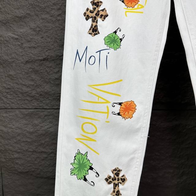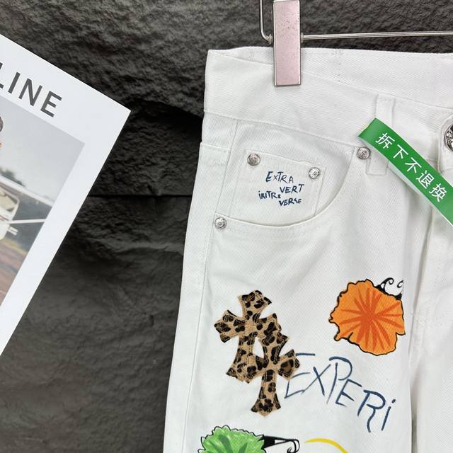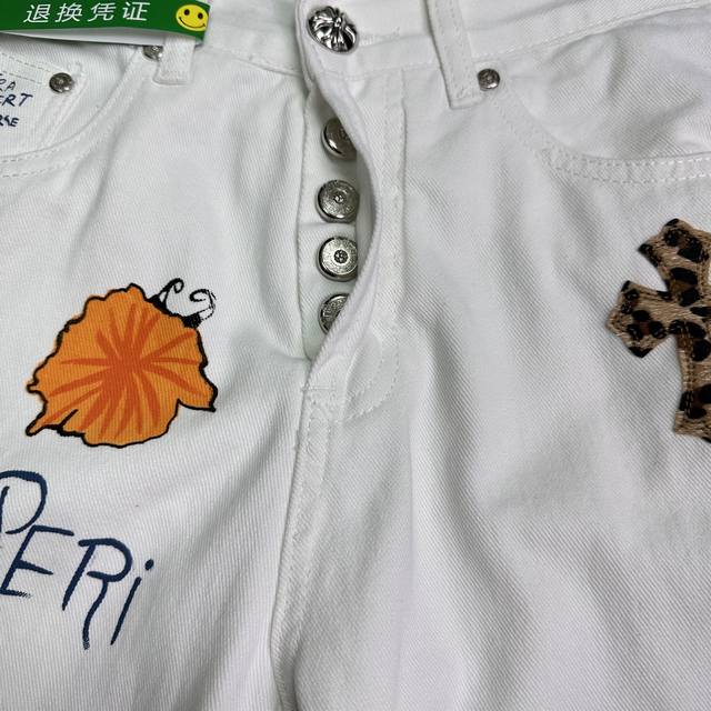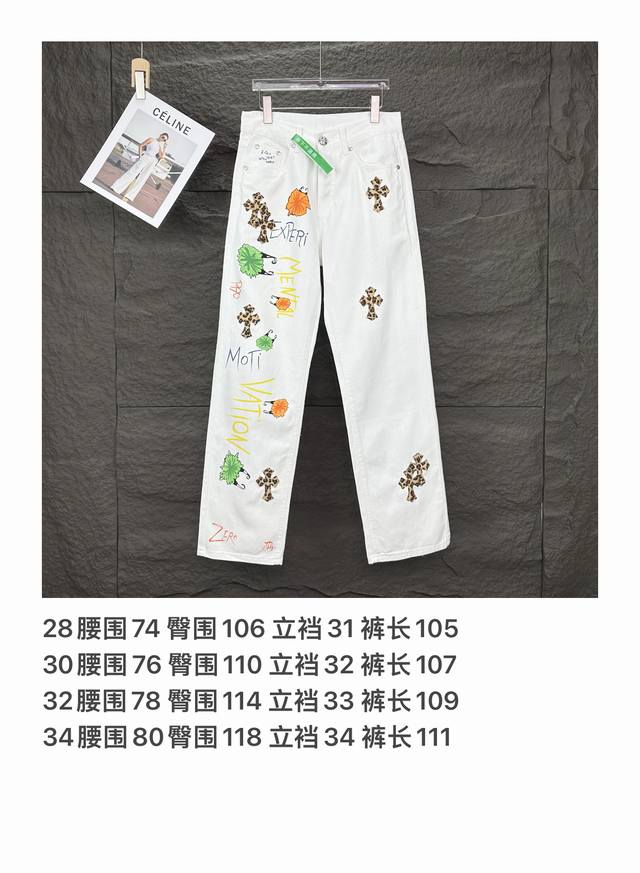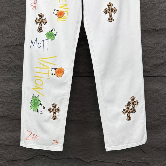 Chrome Hearts 2025 new graffiti hand-painted letters leopard cross couple washed jeans