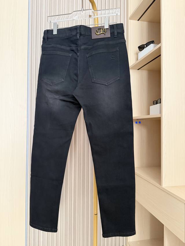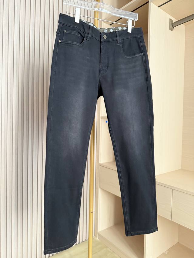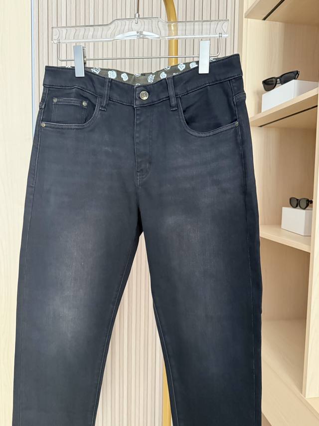 Chrome Hearts - 2025 New Jeans. The metallic leather brand label on the back waistband echoes the delicately embossed logo on the back pocket. The black washed denim fabric has a sophisticated distressed effect, subtly revealing luxurious details within its simplicity, effortlessly creating a low-key, high-quality style. Made from select premium denim fabric, treated with a special process, it combines softness and skin-friendliness with strong abrasion resistance. Comfortable and unrestricted for everyday wear, it is resistant to deformation and fading, maintaining its shape well over time. The slim fit flatters the leg lines and is suitable for all body types. Whether paired with casual or more formal attire, it creates a sharp and stylish look. Sizes: 29-38. Comes with Lane Crawford Hong Kong gift box packaging.